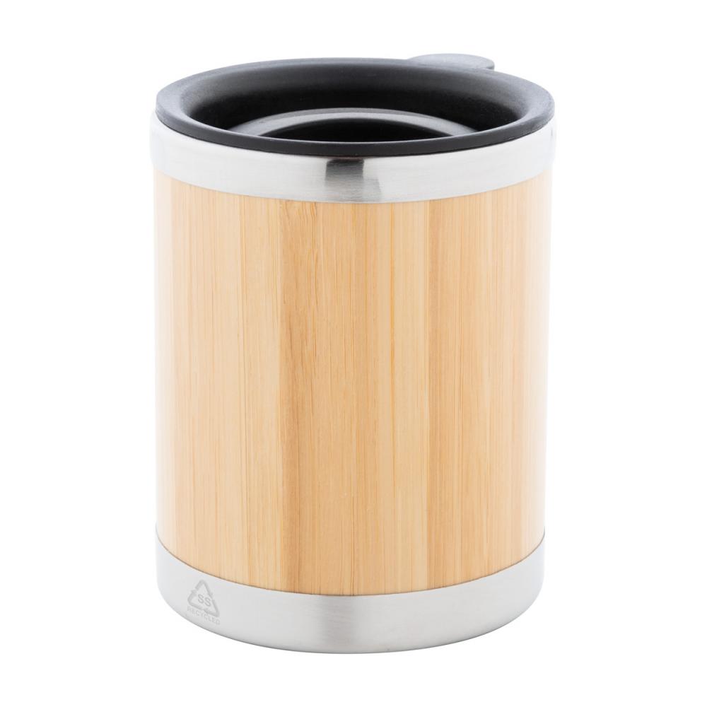 Бамбуковая двойная стенка из переработанной нержавеющей стали с изоляцией, термокружка объемом 300 мл с крышкой для питья из ПП.