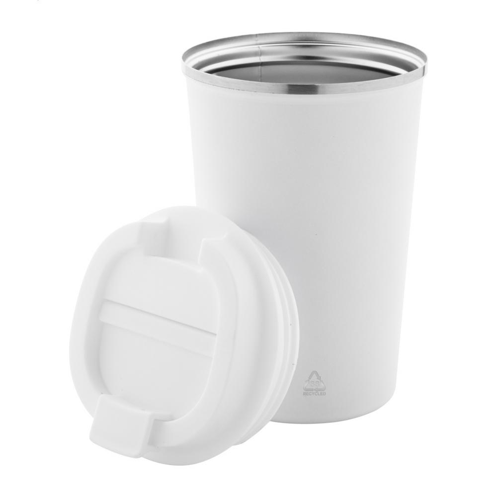 Двойная стенка, изготовленная из переработанной нержавеющей стали, изолированный термокружка с крышкой для питья из ПП. 350 мл.