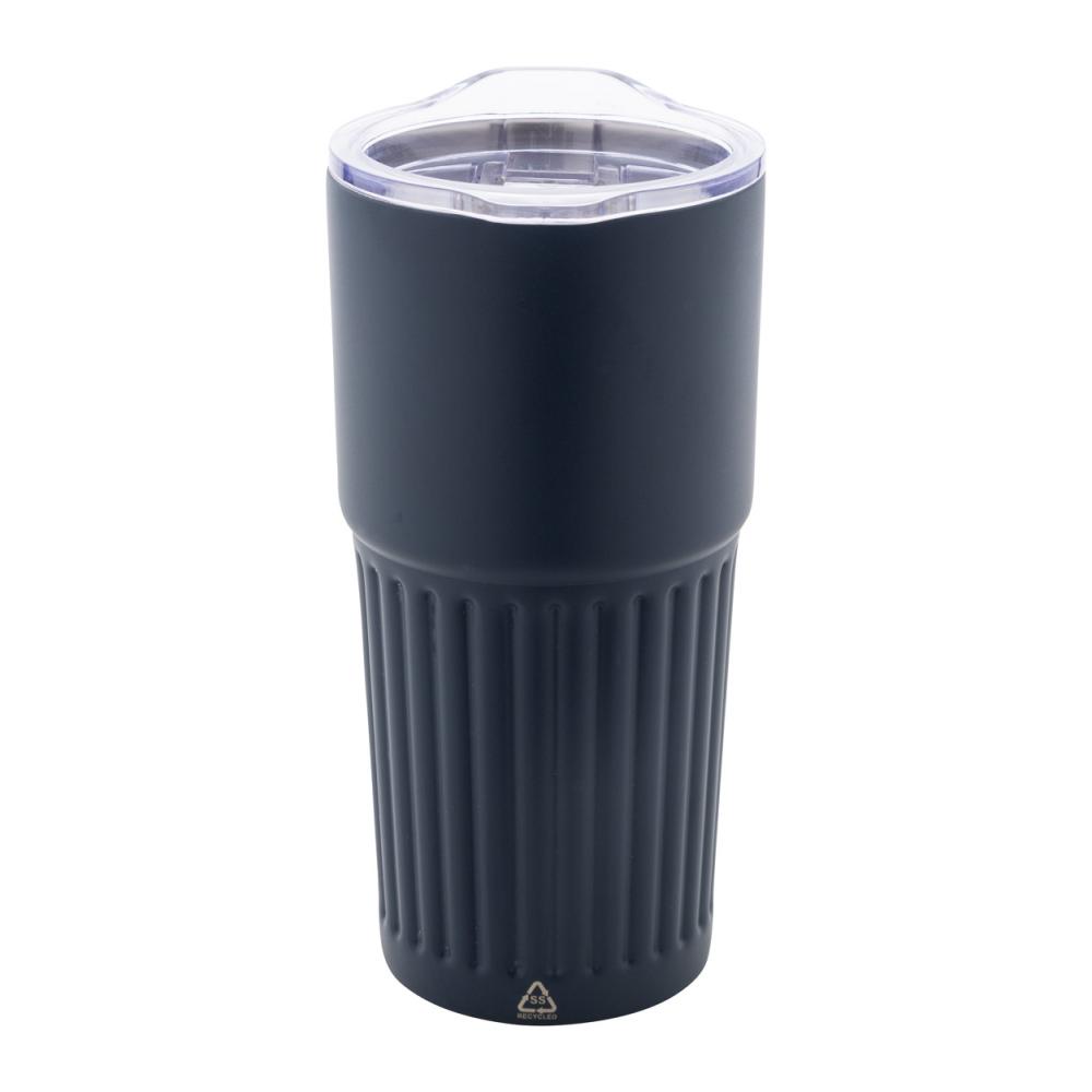 Двустенная изолированная термокружка из переработанной нержавеющей стали с пластиковой крышкой для питья из ABS емкостью 600 мл.