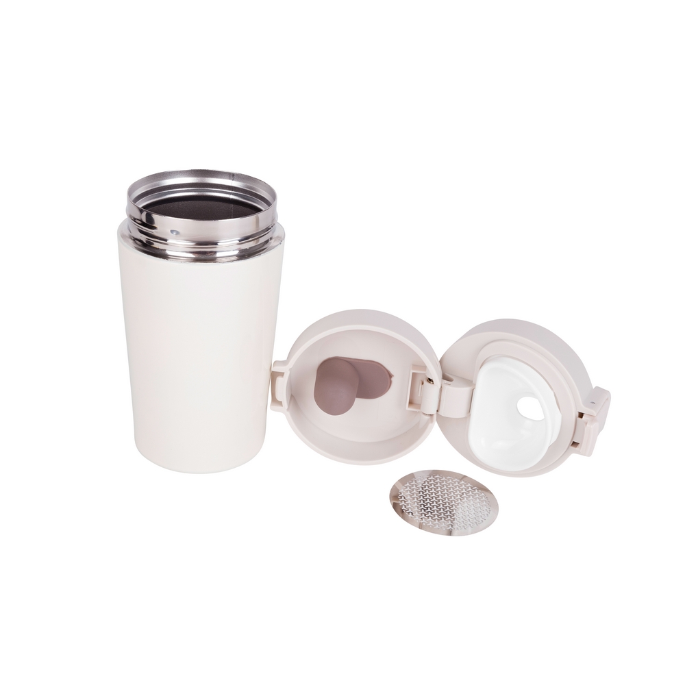 Термокружка 250 мл с ситом, закрывающим остатки, крышка с замком, двойная вакуумная стенка, нержавеющая сталь внутри и снаружи, простая в использовании система открытия / закрытия нажатием, подходит для работы одной рукой, шкала теплоизоляции: 3 + герметичность