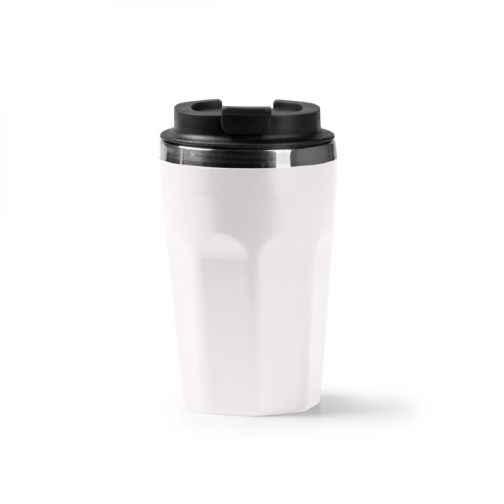 Двухстенный стакан. Внутренняя часть из нержавеющей стали 304, внешняя из переработанного полипропилена. Скошенный дизайн. Вместимость: 400 мл. Представлен в дизайнерской коробке.