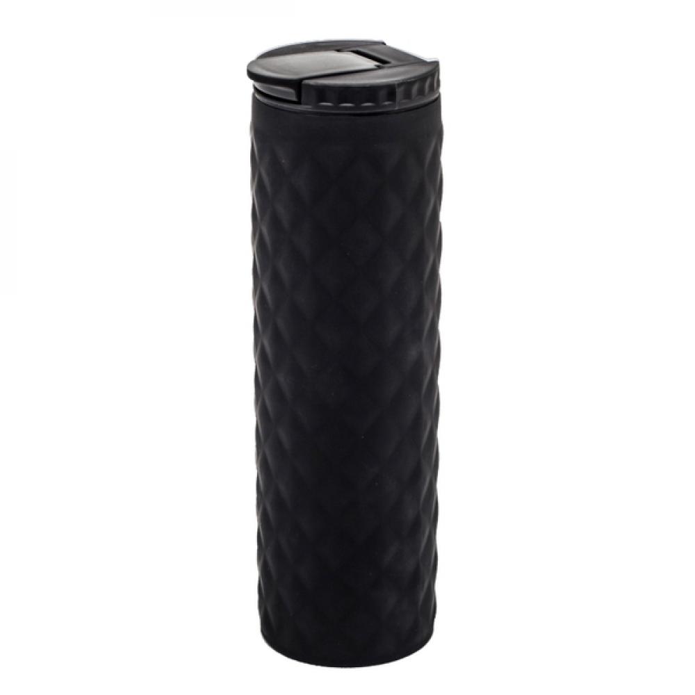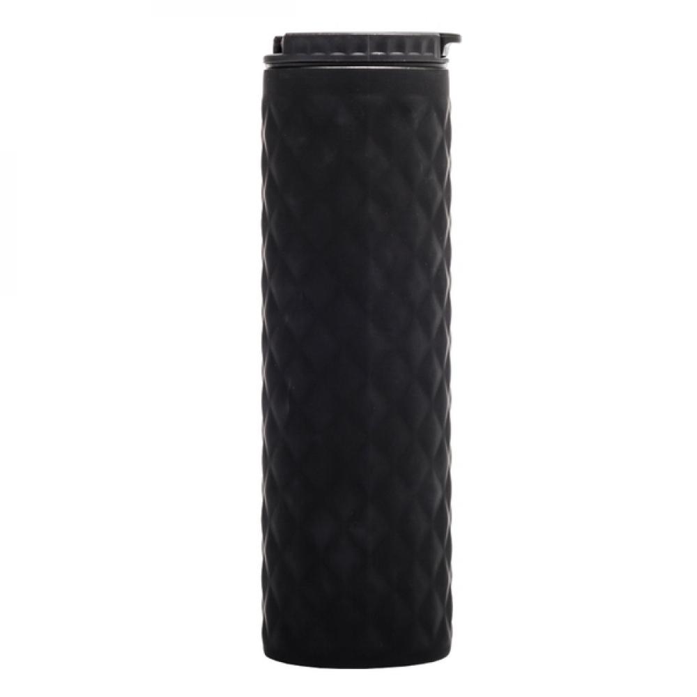 Изолированная кружка 450 мл - термос. Поверхность с тиснением в виде вафель, приятная на ощупь. Изготовлен из нержавеющей стали и вакуума между двумя стенками. Вакуум гарантирует отличные теплоизоляционные свойства. Внутренняя стенка из улучшенной стали 18/8. Откидная крышка для глотка. Стирать вручную. Он поддерживает температуру выше 40 градусов по Цельсию в течение 8 часов. Возможна полноцветная печать (УФ).