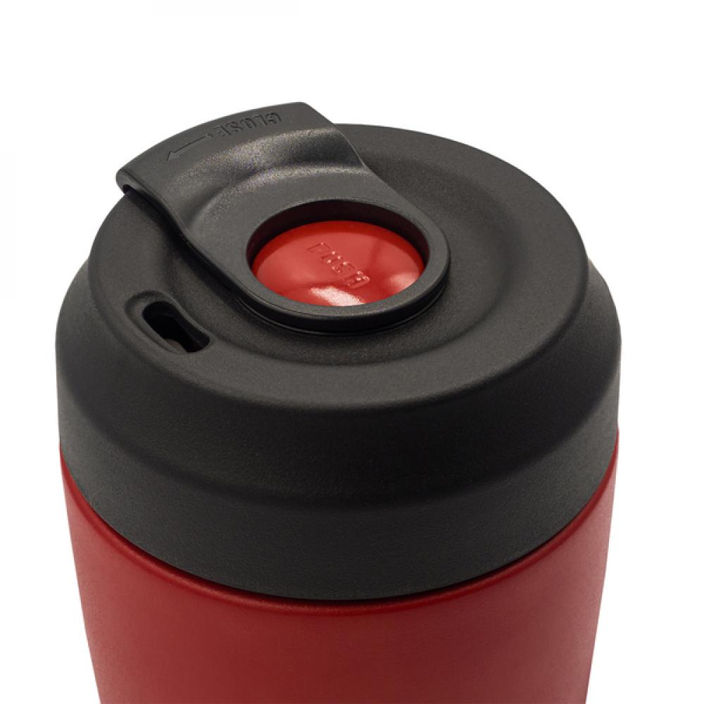 Вакуумная кружка с надежной защелкой. Нажмите на кнопку, и крышка откроется, позволяя вам свободно пить из кружки. Две стенки из нержавеющей стали 18/8 более высокого качества. Вакуум между стенками обеспечивает очень хорошие теплоизоляционные свойства. Сохраняет температуру выше 40°C до 8 часов.