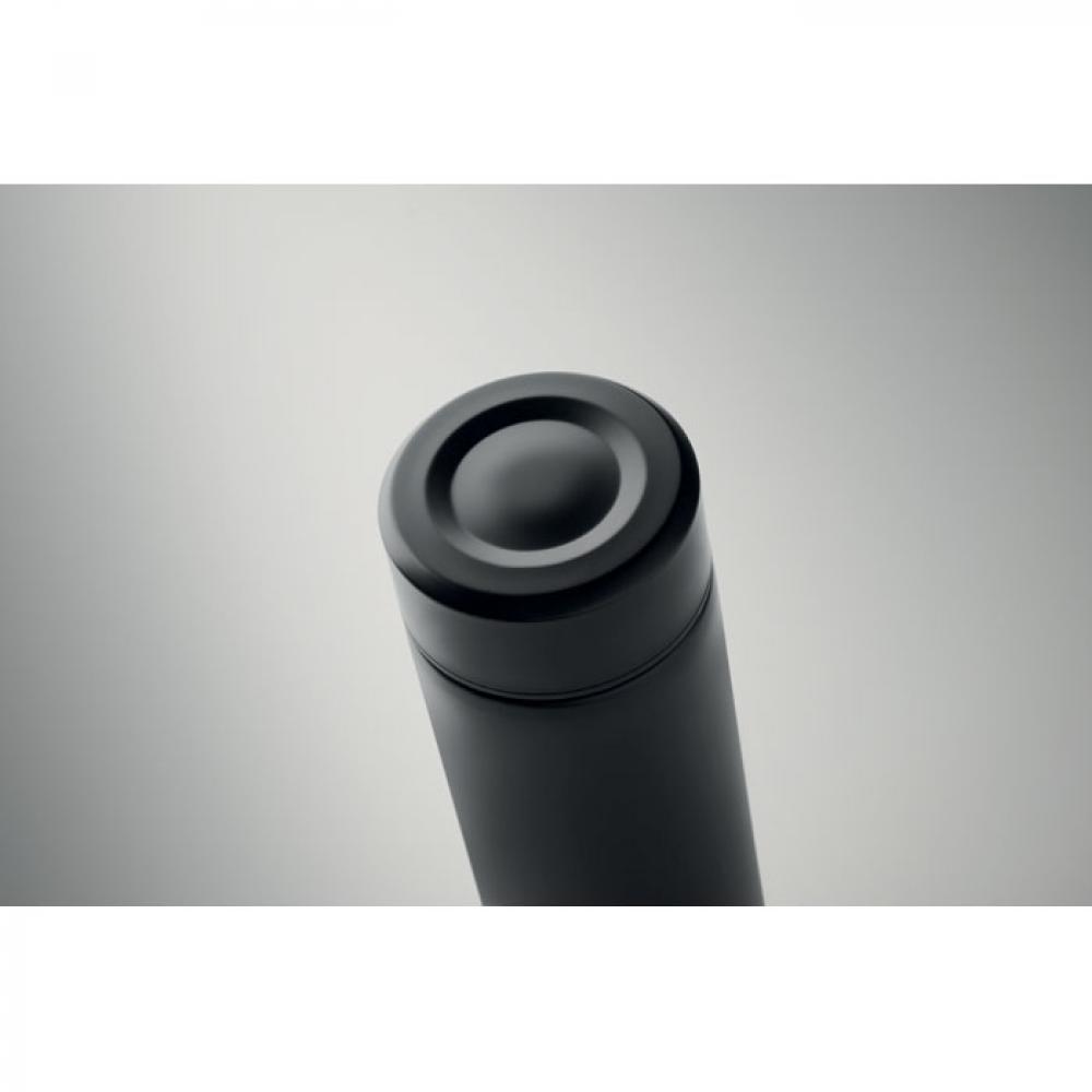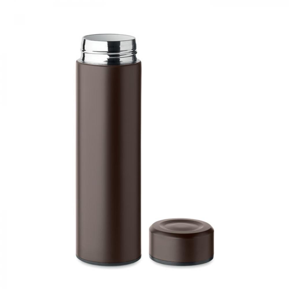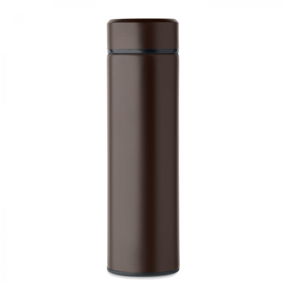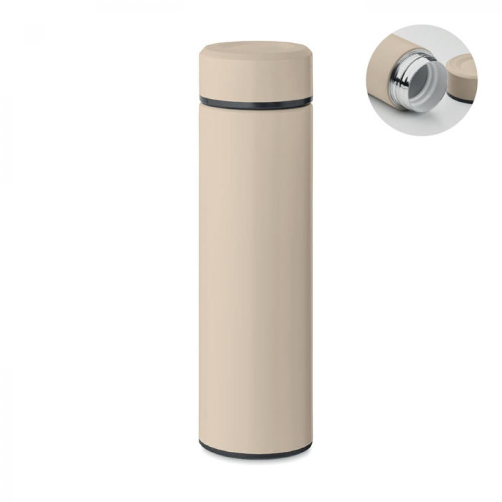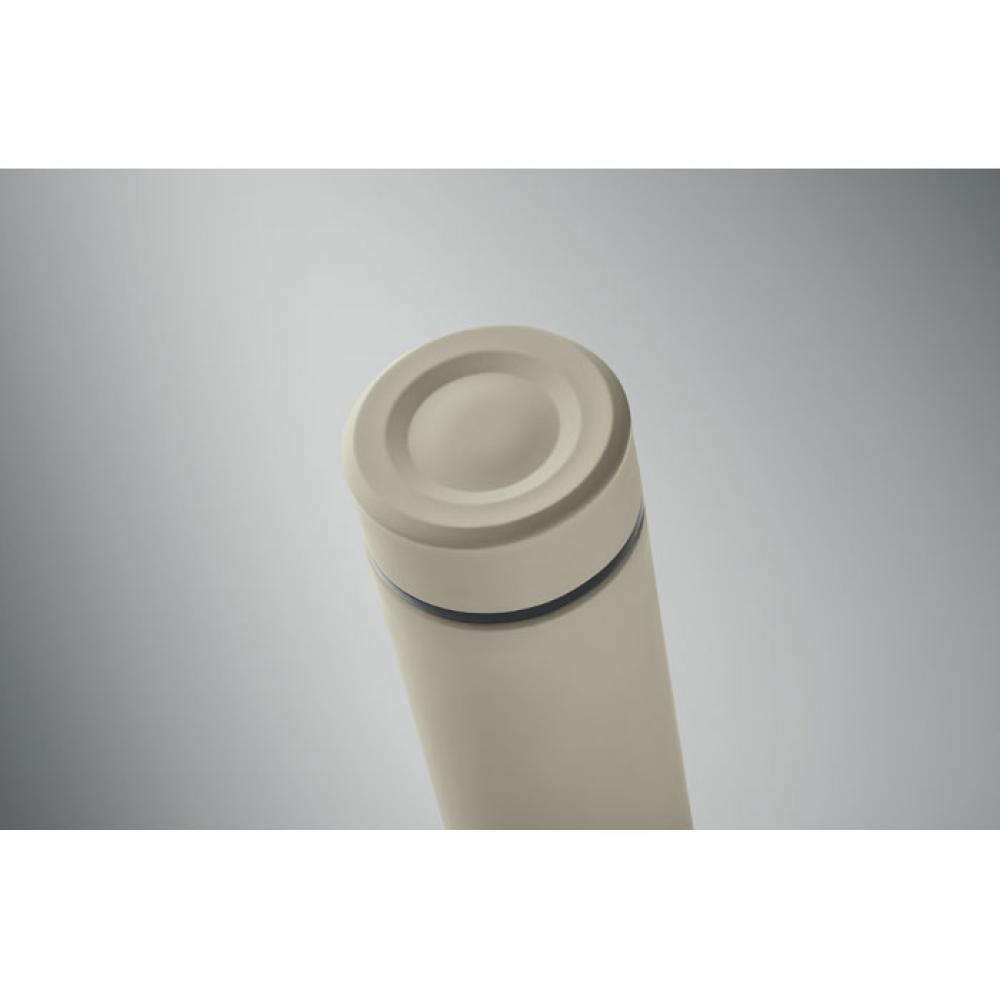Двустенный термос из переработанной нержавеющей стали (90%) и обычной нержавеющей стали (10%) с внутренней керамической колбой. Герметичен. Объем: 420 мл.