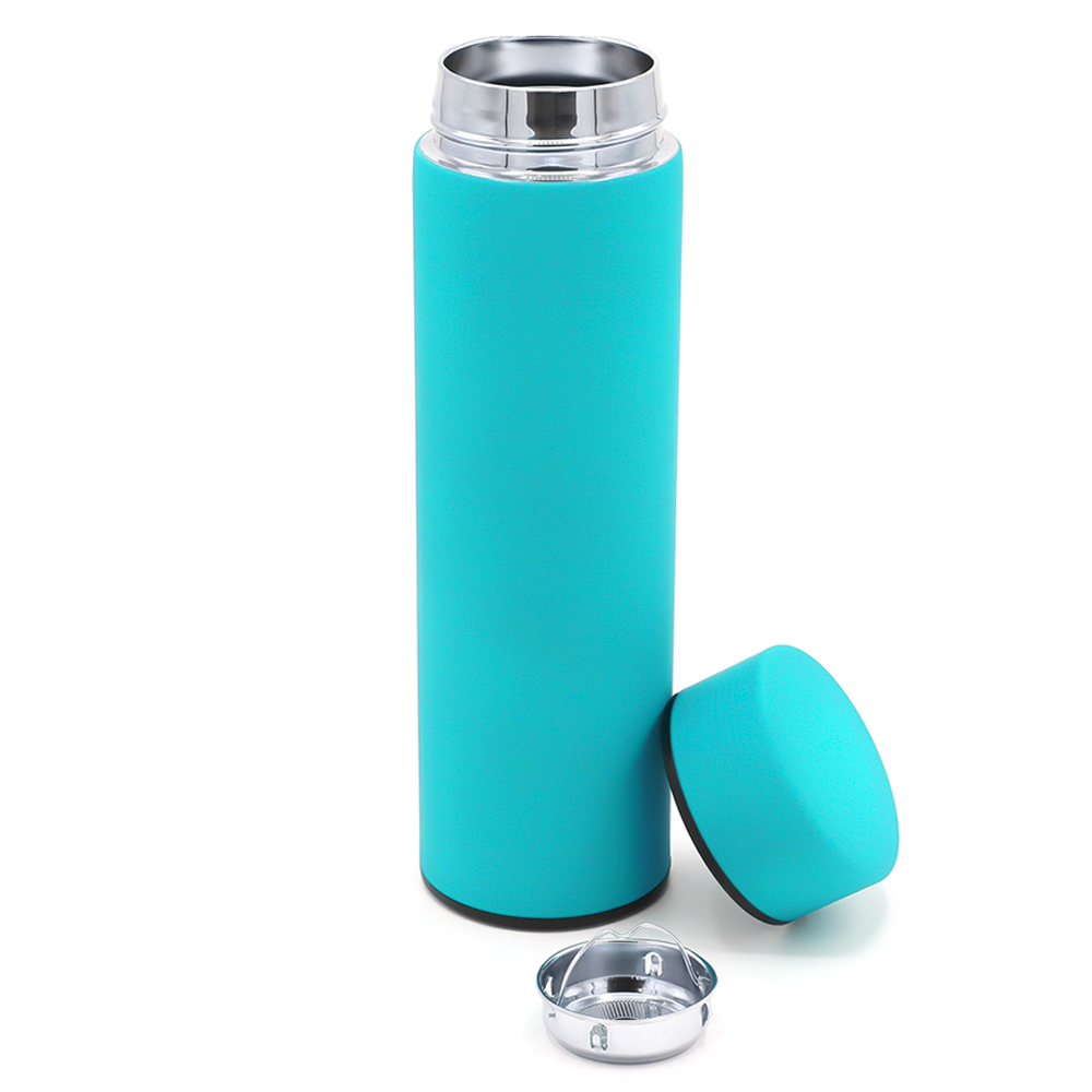 Необычайно приятный благодаря покрытию soft-touch термос BRONX в классической форме прекрасен и надежен как и вся классика. Внутри имеется съемное ситечко-инфьюзер из нержавеющей стали, что позволяет настаивать травяные напитки и чай. Бирюзовый цвет максимально приближен к пантону 2226C