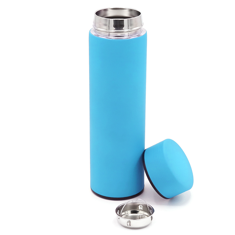 Необычайно приятный благодаря покрытию soft-touch термос BRONX в классической форме прекрасен и надежен как и вся классика. Внутри имеется съемное ситечко-инфьюзер из нержавеющей стали, что позволяет настаивать травяные напитки и чай. Голубой цвет максимально приближен к пантону 298C