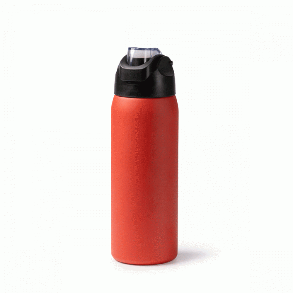 Термос с двойными стенками из переработанной нержавеющей стали 304. Крышка с кнопкой для открывания и ручкой для переноски. Объем: 930 мл. Поставляется в экологически дизайнерской коробке.