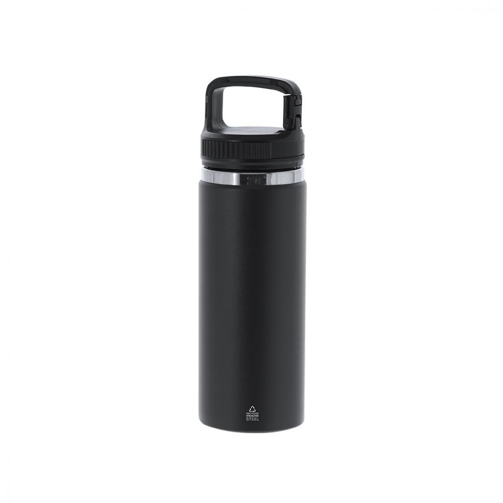 Термос с объемом 550 мл, изготовленный из переработанной нержавеющей стали с двойными стенками. Имеет функциональную ручку с двойной функцией карабина для удобной и универсальной транспортировки. Со винтовой крышкой и матовым основанием, дополненным элегантным декоративным серебряным кольцом. Без содержания BPA. Нержавеющая сталь является одним из самых востребованных материалов и можно встретить практически везде, от повседневных товаров до крупных конструкций. Обладая бесчисленными свойствами, включая прочность и высокую возможность повторного использования, она является высоко ценным альтернативным решением в области устойчивого развития. При правильной обработке позволяет получать новые ресурсы бесконечного использования.