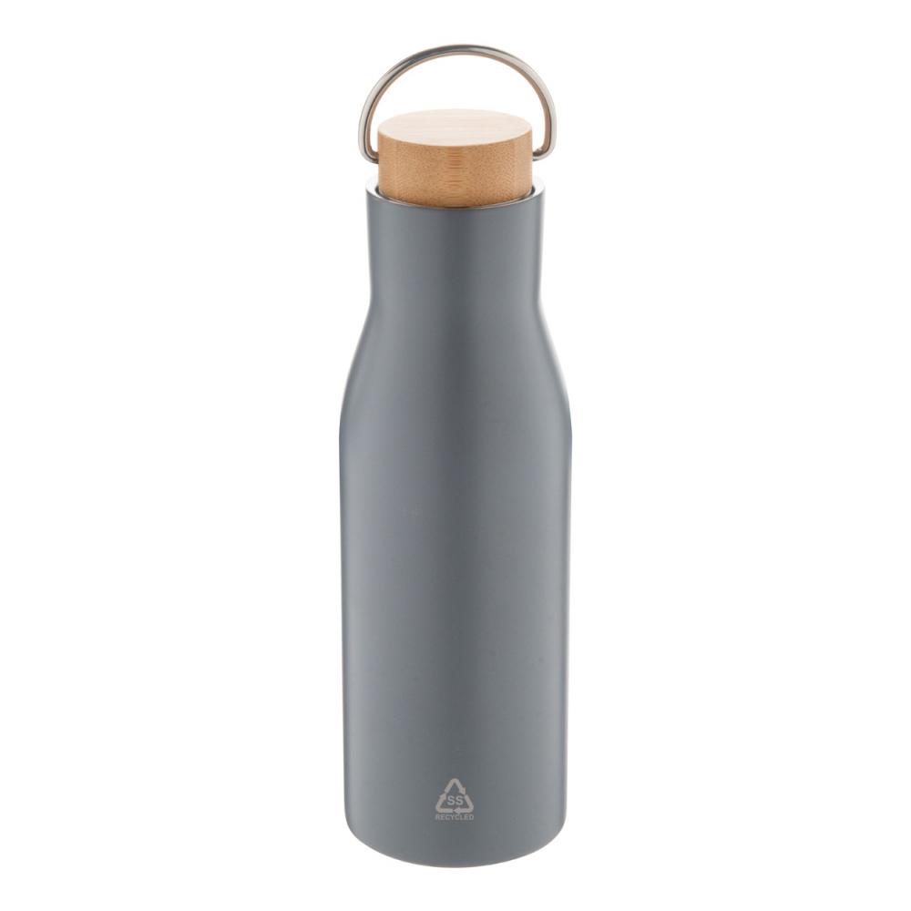 Двухстенная, переработанная нержавеющая стальная изолированная вакуумная фляга с крышкой для переноски из бамбука, 500 мл.