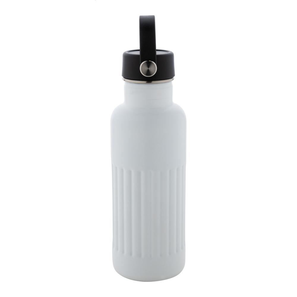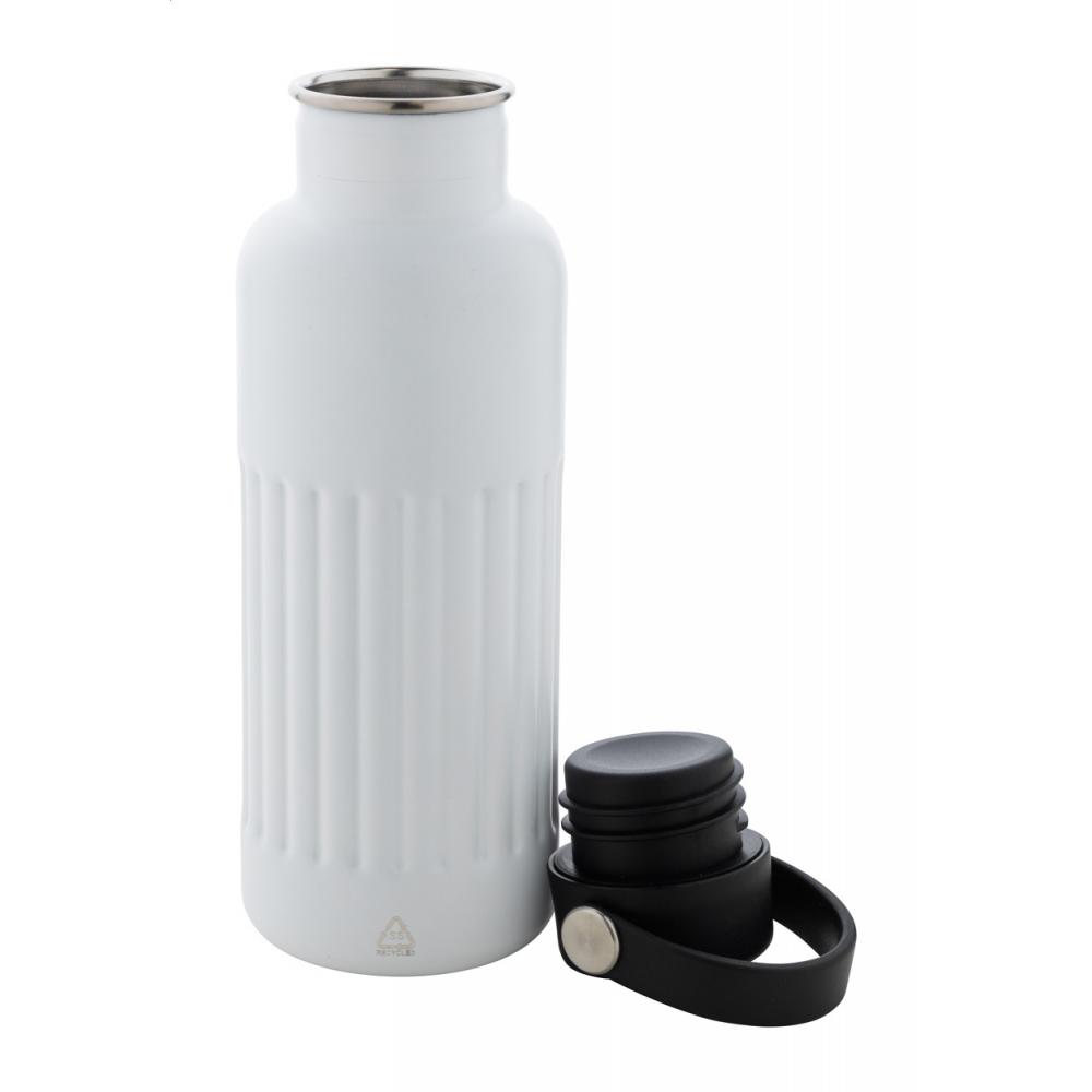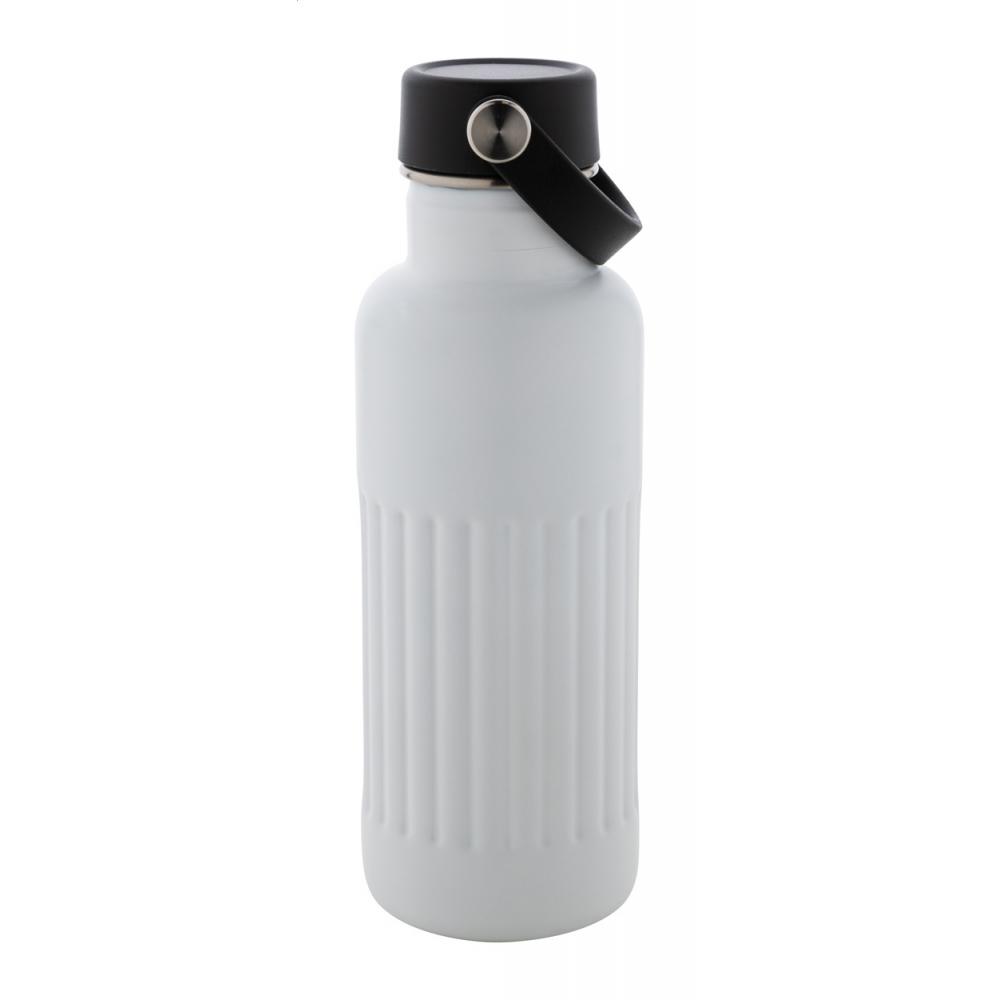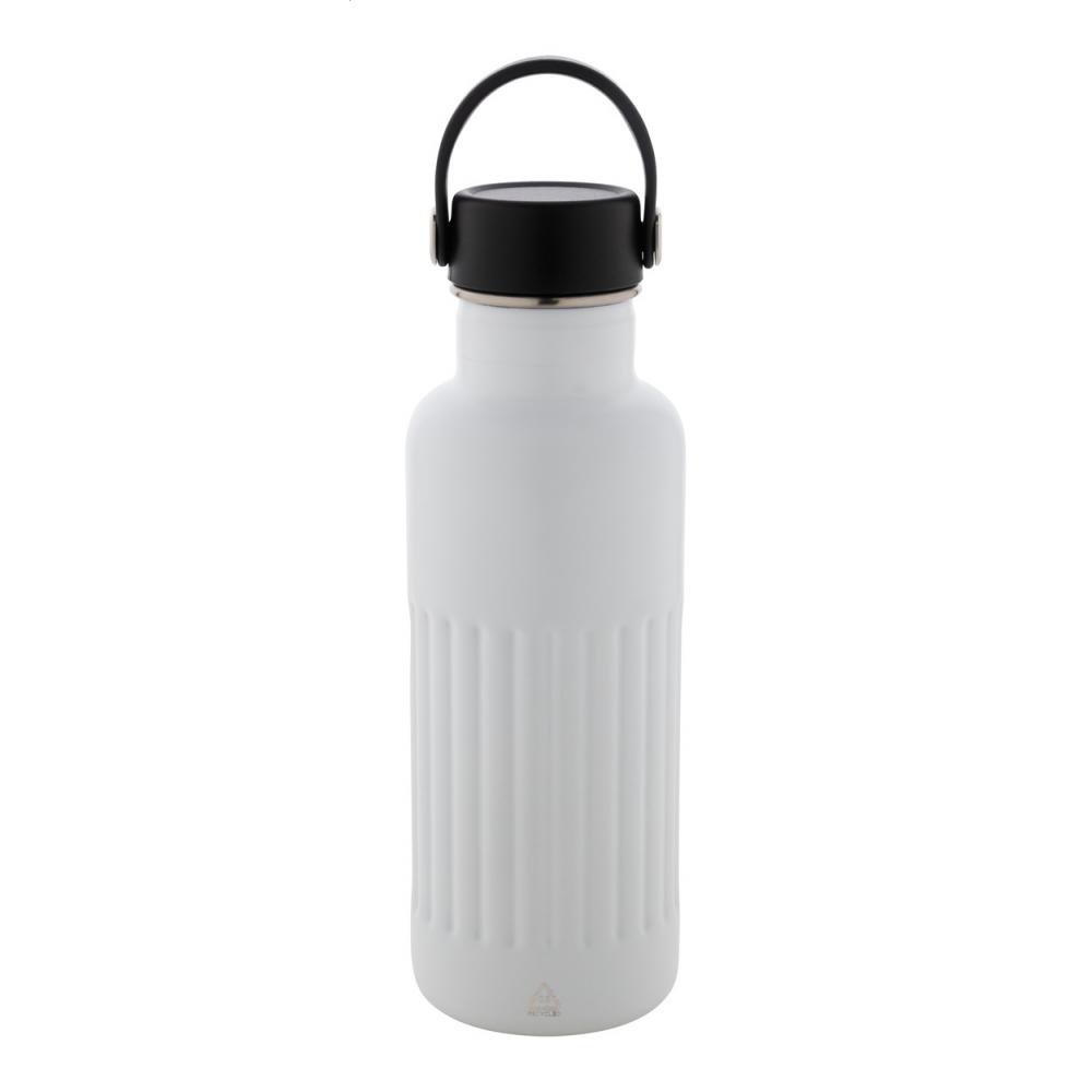 Двухстенная, переработанная нержавеющая стальная вакуумная изолированная бутылка с крышкой для переноски из ПП-пластика. 500 мл.