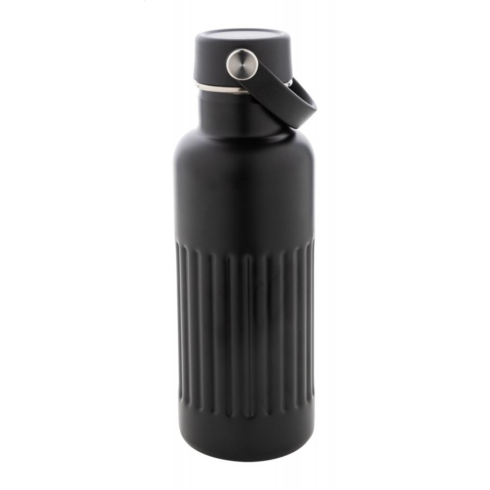 Двухстенная, переработанная нержавеющая стальная вакуумная изолированная бутылка с крышкой для переноски из ПП-пластика. 500 мл.