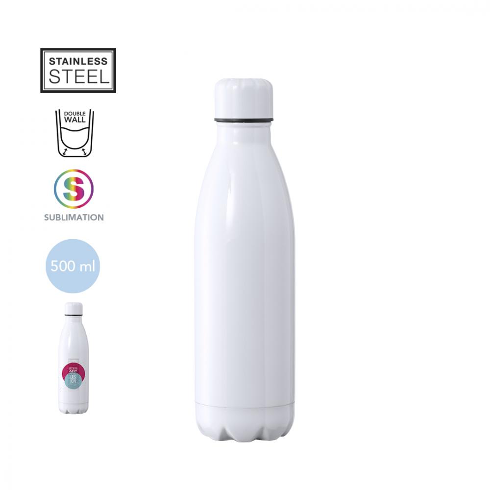 Термобутылка емкостью 500 мл, изготовленная из нержавеющей стали с двойными стенками и специально разработанная для сублимационной печати. Глянцево-белая отделка с соответствующей завинчивающейся крышкой, не содержит BPA. Представлен в индивидуальной коробке с крафт-дизайном. 500 мл