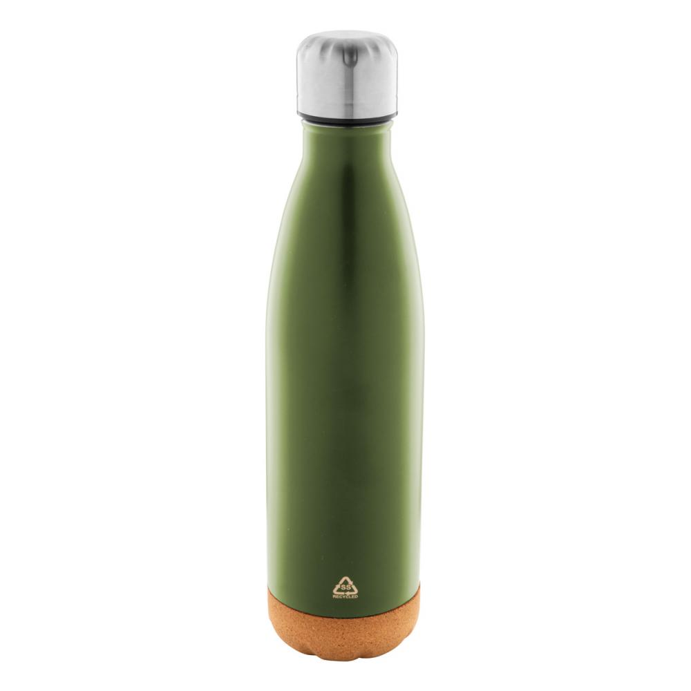 Двухстенная, переработанная нержавеющая стальная вакуумная изолированная бутылка с натуральным корковым основанием. 500 мл.