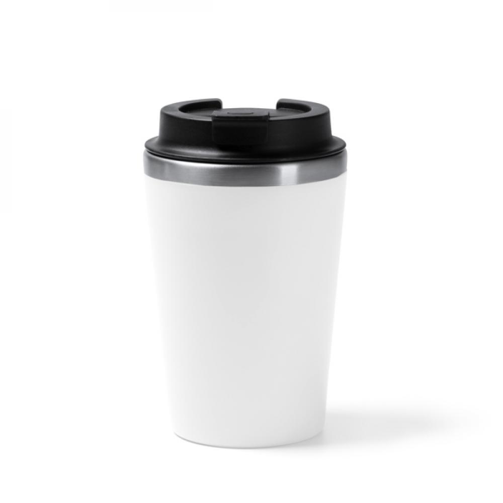 Двухстенный стакан. Внутренняя часть из нержавеющей стали 304, внешняя - из ПП. Винтовая крышка с дозатором. Объем: 350 мл. Представлен в дизайнерской коробке.