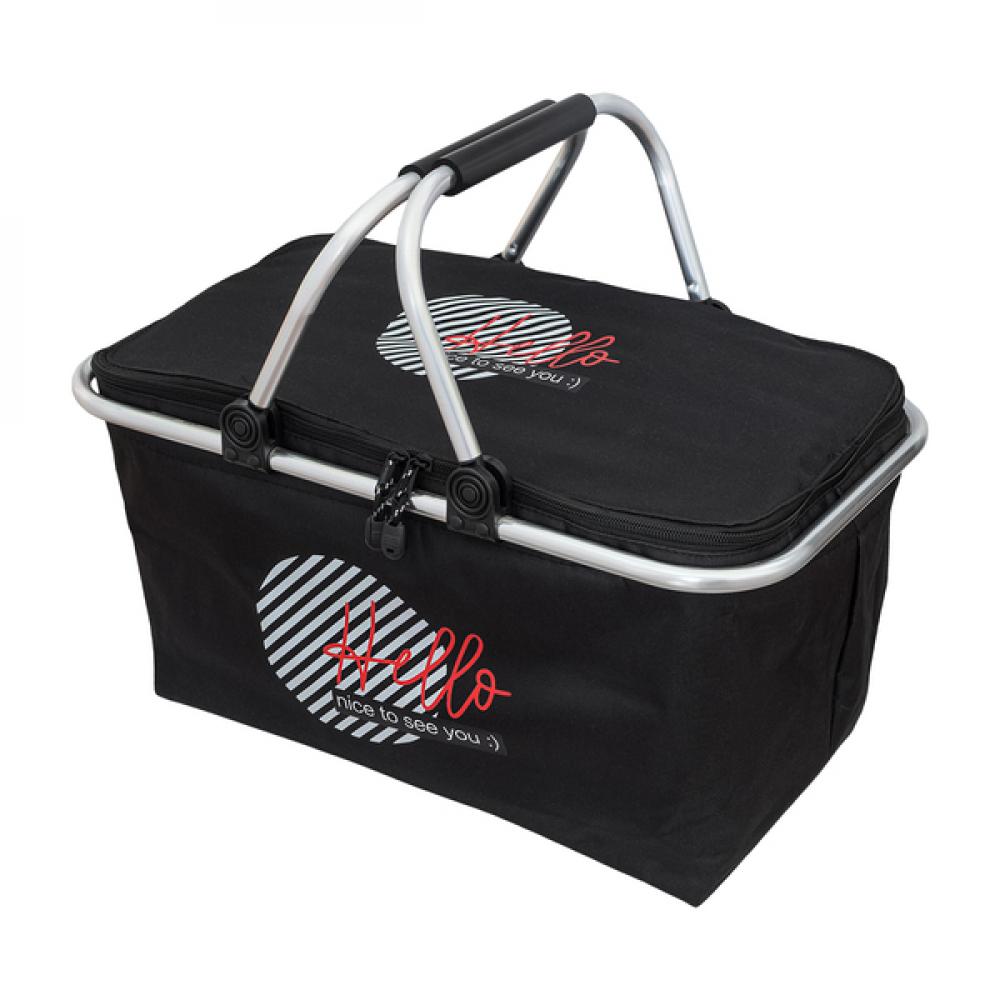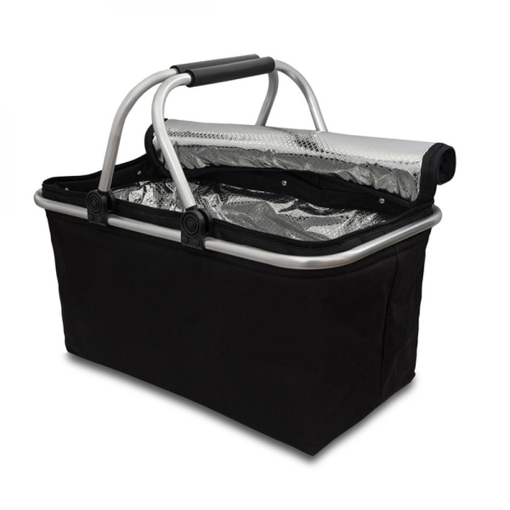 Корзина для пикника с изоляцией из полиэстера, алюминиевой рамой и ручкой из ЭВА. Он обеспечивает превосходную теплоизоляцию благодаря алюминиевой фольге и подстилке из пенополиуретана EPE внутри корзины. Объем: 32 л. Максимальная нагрузка: 15 кг.