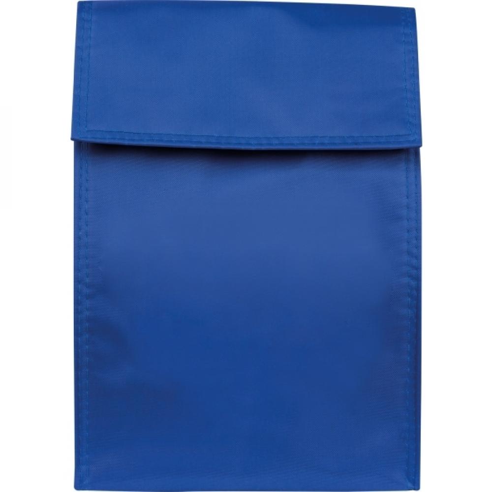 Охлаждающий пакет из полиэстера с изолирующей пленкой внутри и застежкой на липучке. На одной стороне будет напечатан ваш логотип.