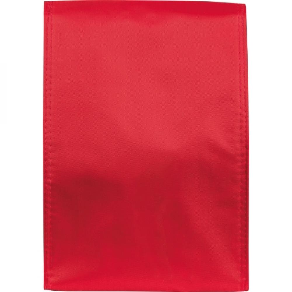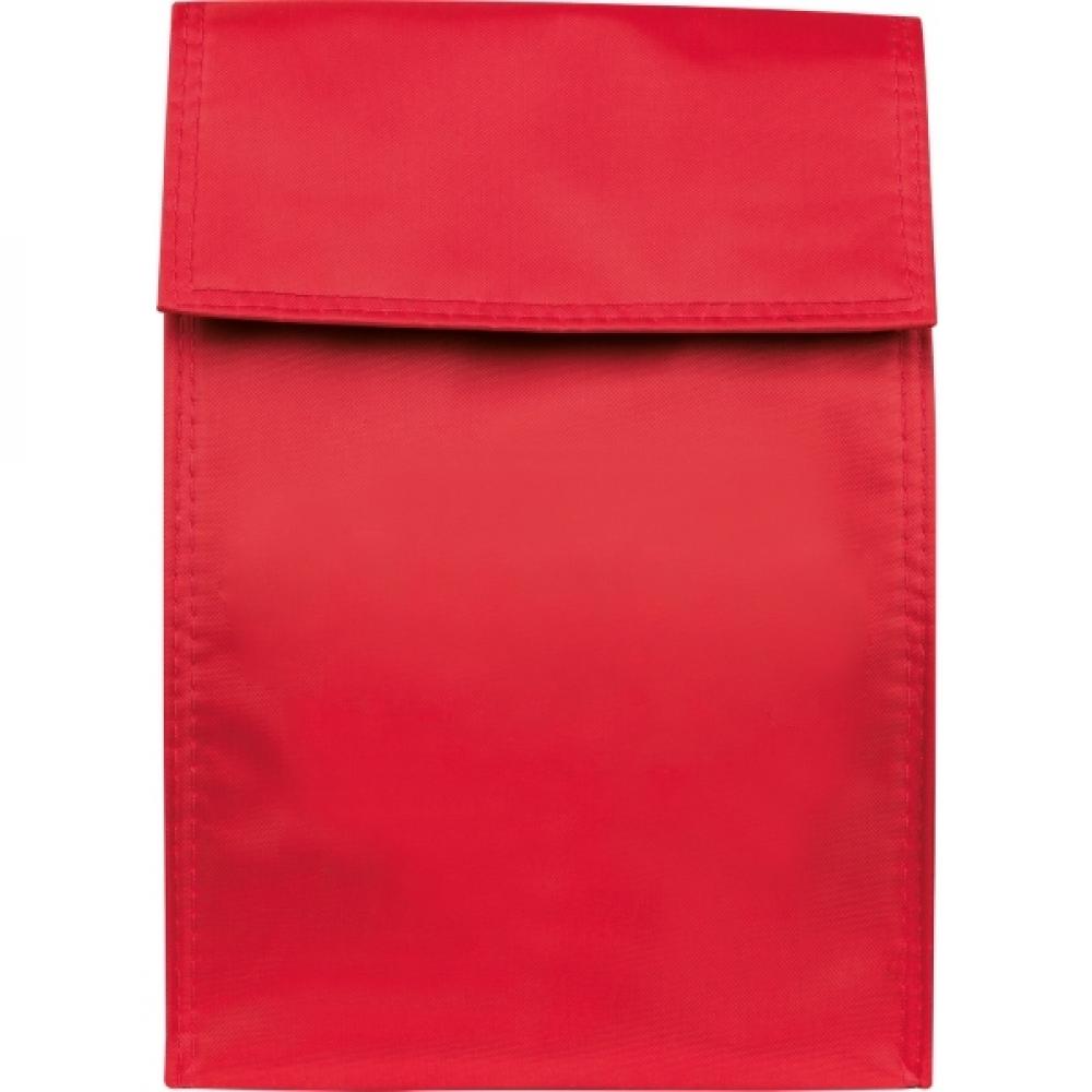 Охлаждающий пакет из полиэстера с изолирующей пленкой внутри и застежкой на липучке. На одной стороне будет напечатан ваш логотип.