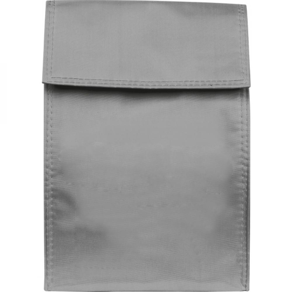 Охлаждающий пакет из полиэстера с изолирующей пленкой внутри и застежкой на липучке. На одной стороне будет напечатан ваш логотип.