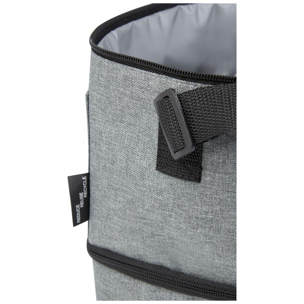 Сумка-холодильник Tundra из переработанных материалов предоставляет достаточно места для всех ваших обеденных вкусностей. Она оснащена верхним и нижним изолированными отделениями на молнии. Нижнее отделение идеально подходит для вашего бенто-бокса, а передний карман отлично подходит для хранения мелких предметов. Внутренняя подкладка из PEVA и внешняя часть сумки изготовлены из переработанного пластика PET, сертифицированного по стандарту GRS.