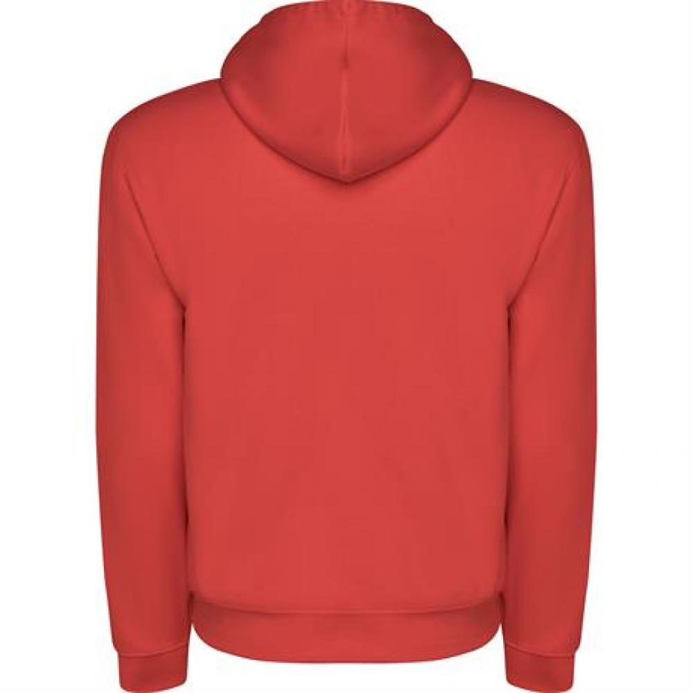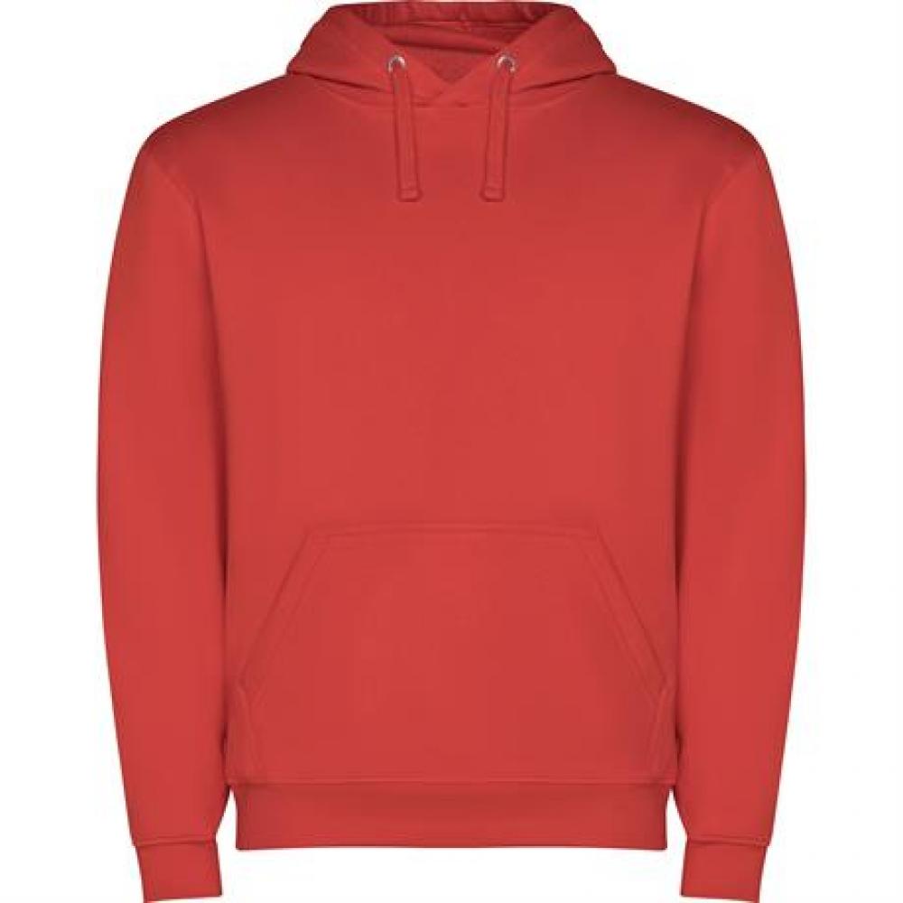 Толстовка с карманом-кенгуру и капюшоном с плоским шнурком для регулировки. Манжеты и низ из ткани в рубчик 1 x 1 с эластаном. Модель для детей — с капюшоном без шнурка. *Съемная этикетка.