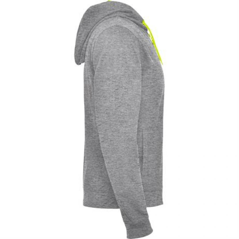 Толстовка из футера без начеса с деталями неонового цвета. Молния по центру с контрастным бегунком неонового цвета. Капюшон с контрастной неоновой подкладкой из микроперфорированного полиэстера, а также шнурком и металлическими люверсами. Длинные рукава.
