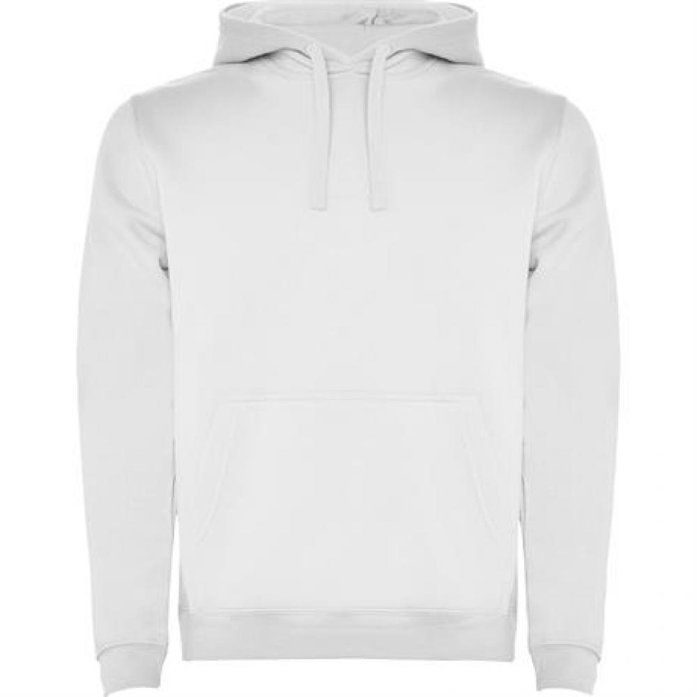 Однотонная или двухцветная толстовка с двухслойным капюшоном, регулируемым шнурком и карманом-кенгуру. Манжеты и нижний край выполнены из эластичной резинки 1x1.