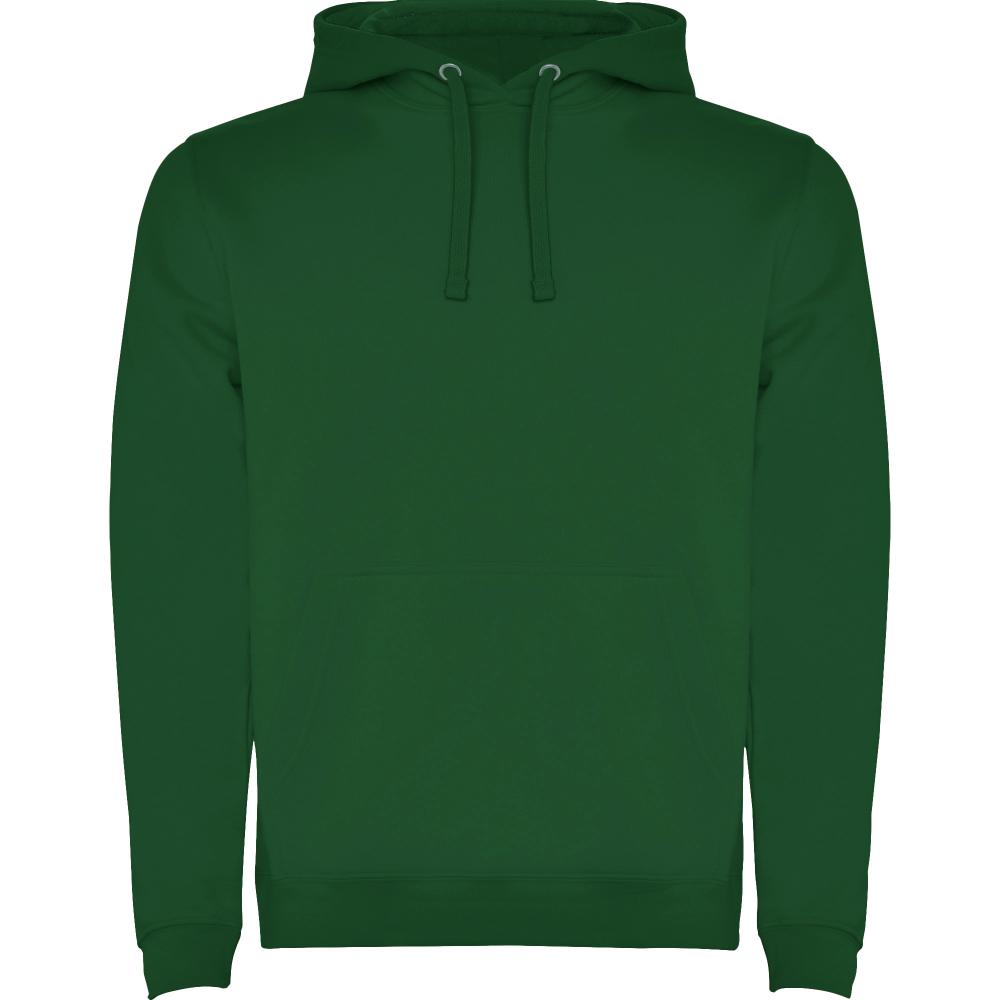 Однотонная или двухцветная толстовка с двухслойным капюшоном, регулируемым шнурком и карманом-кенгуру. Манжеты и нижний край выполнены из эластичной резинки 1x1.