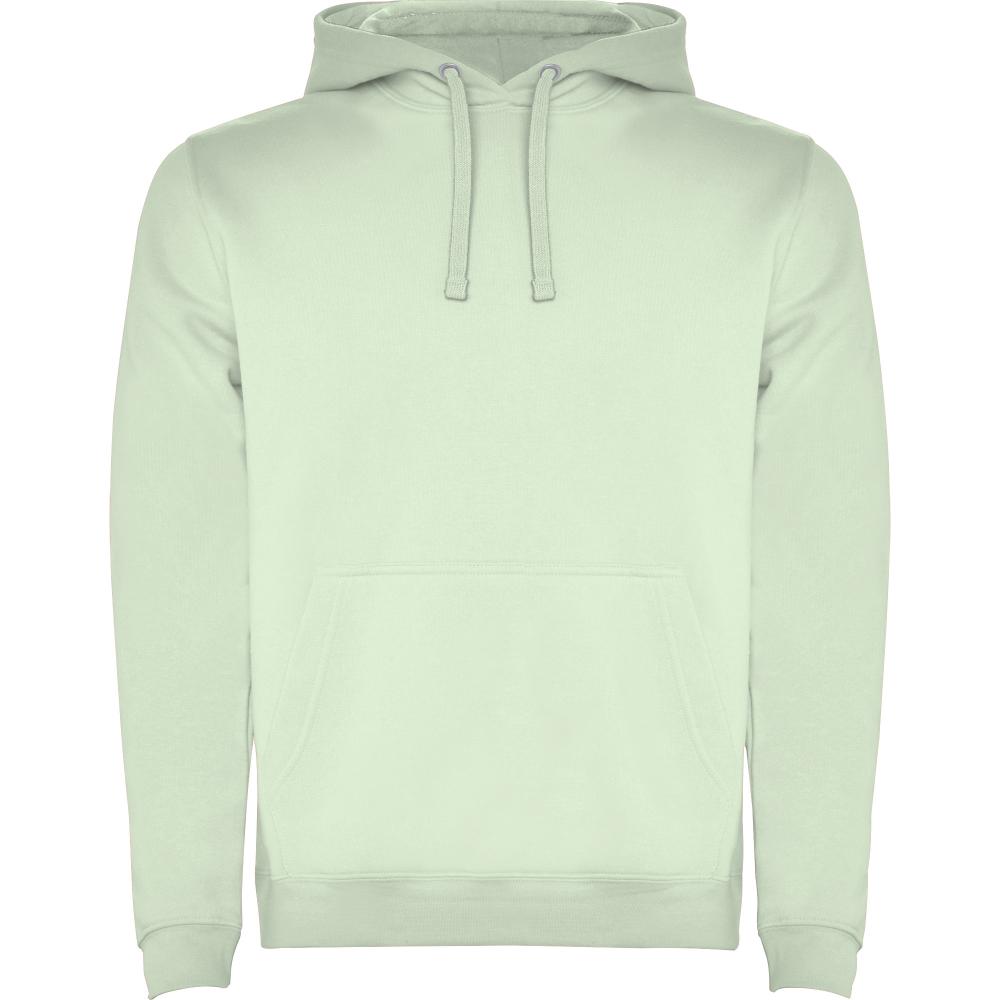 Однотонная или двухцветная толстовка с двухслойным капюшоном, регулируемым шнурком и карманом-кенгуру. Манжеты и нижний край выполнены из эластичной резинки 1x1.