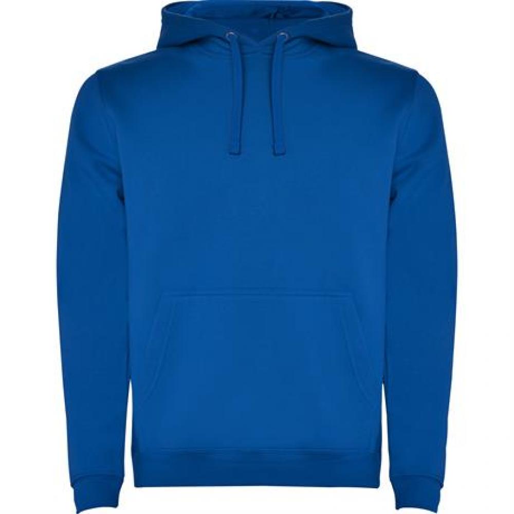 Однотонная или двухцветная толстовка с двухслойным капюшоном, регулируемым шнурком и карманом-кенгуру. Манжеты и нижний край выполнены из эластичной резинки 1x1.