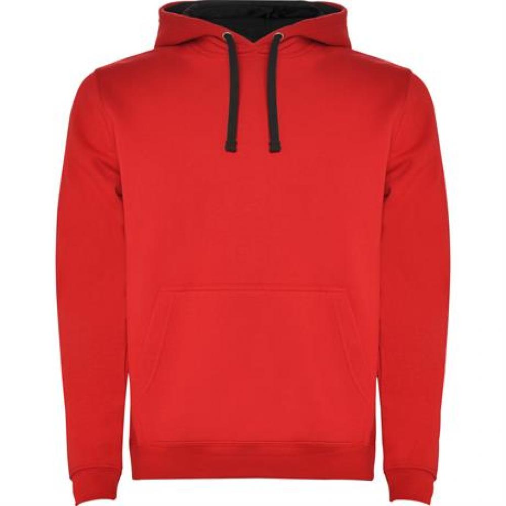 Однотонная или двухцветная толстовка с двухслойным капюшоном, регулируемым шнурком и карманом-кенгуру. Манжеты и нижний край выполнены из эластичной резинки 1x1.