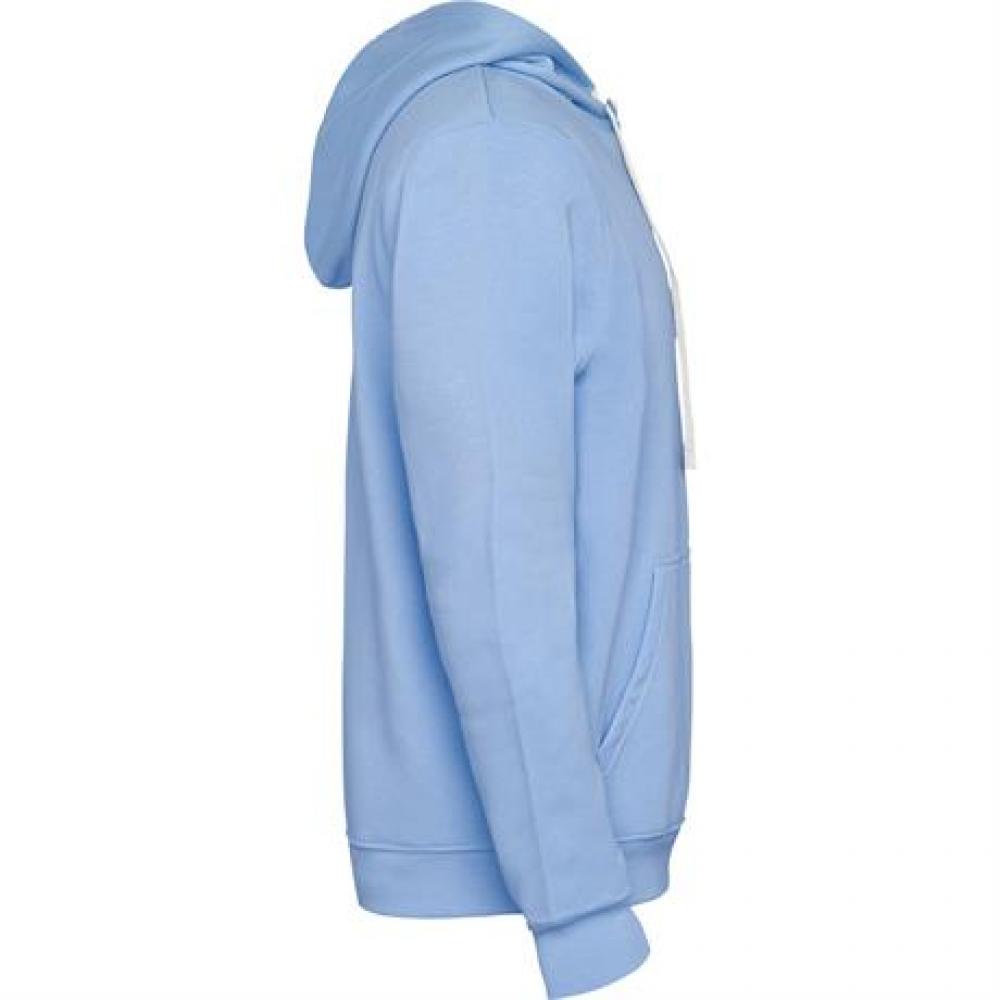 Однотонная или двухцветная толстовка с двухслойным капюшоном, регулируемым шнурком и карманом-кенгуру. Манжеты и нижний край выполнены из эластичной резинки 1x1.