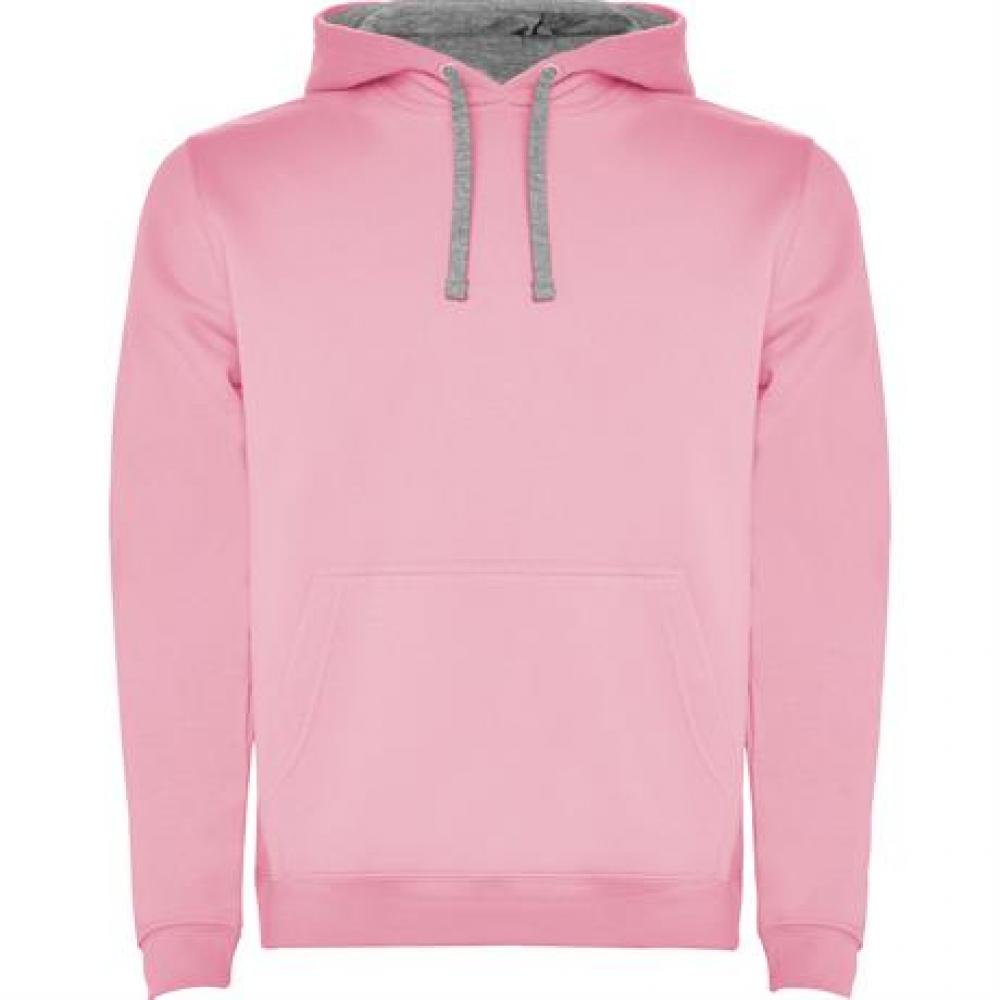 Однотонная или двухцветная толстовка с двухслойным капюшоном, регулируемым шнурком и карманом-кенгуру. Манжеты и нижний край выполнены из эластичной резинки 1x1.