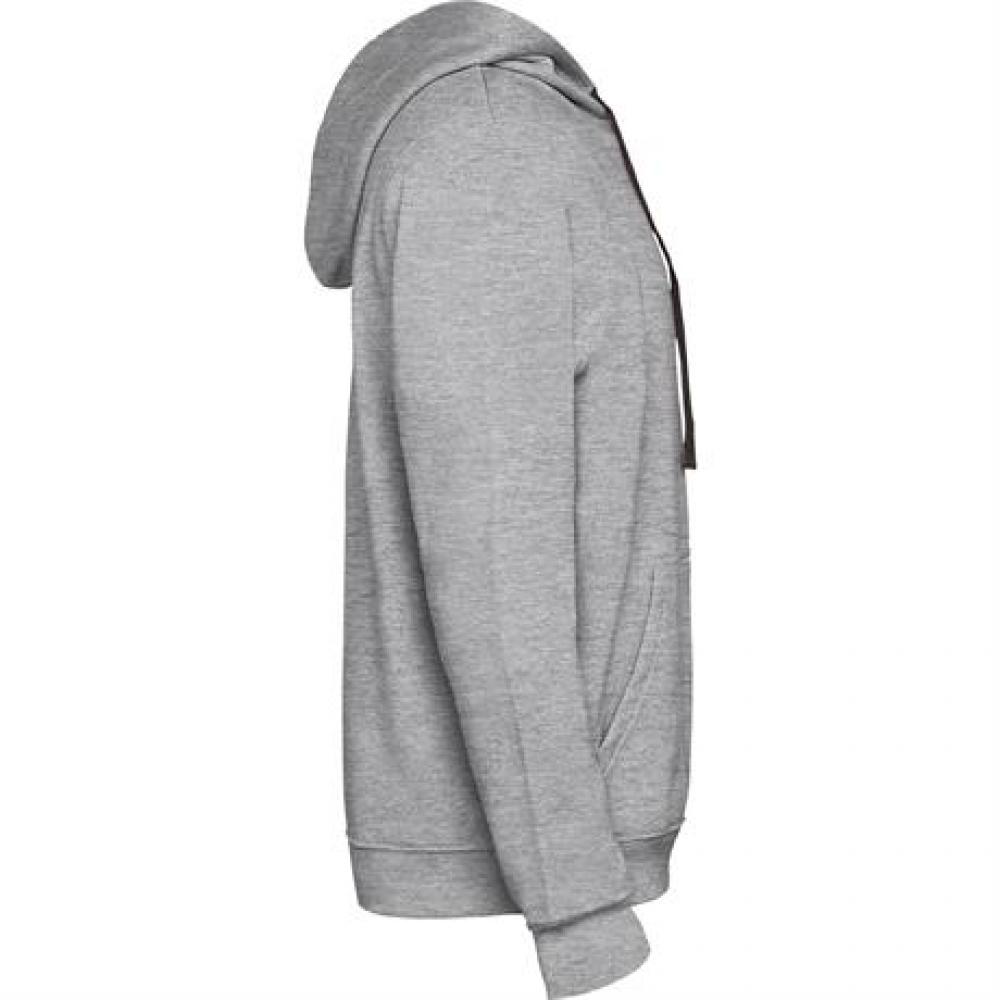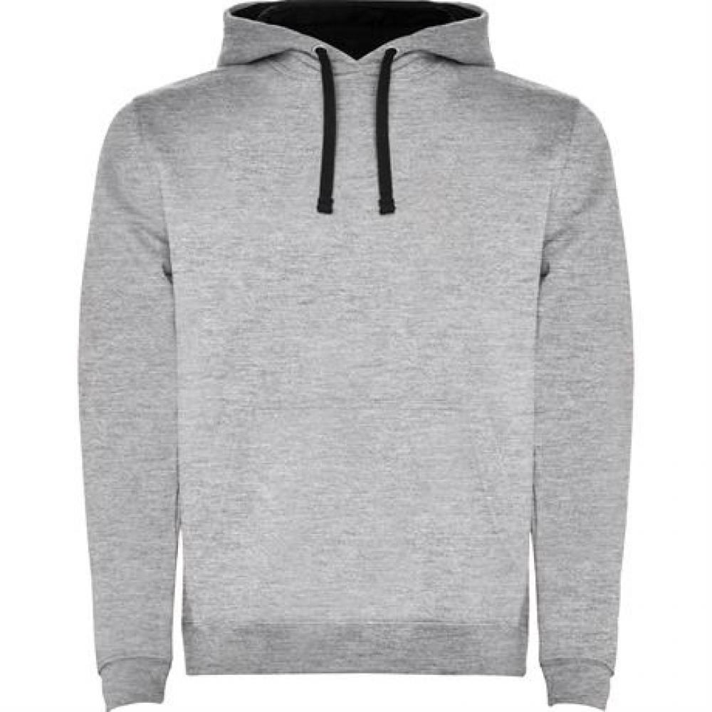 Однотонная или двухцветная толстовка с двухслойным капюшоном, регулируемым шнурком и карманом-кенгуру. Манжеты и нижний край выполнены из эластичной резинки 1x1.