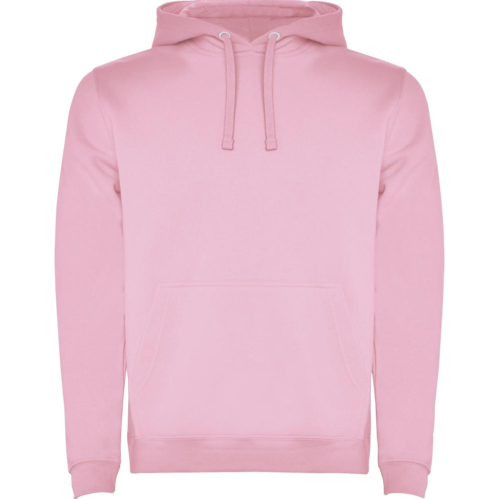 Однотонная или двухцветная толстовка с двухслойным капюшоном, регулируемым шнурком и карманом-кенгуру. Манжеты и нижний край выполнены из эластичной резинки 1x1.