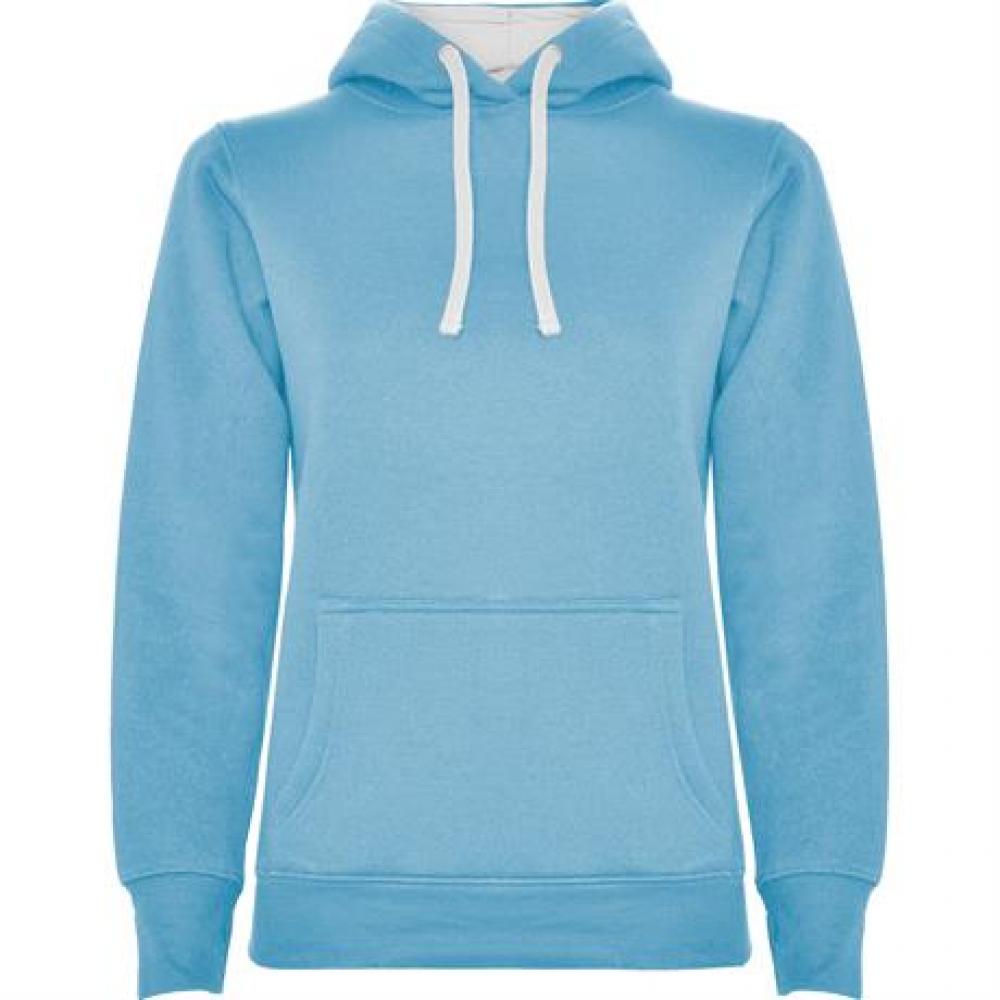 Приталенное женское Толстовка с двухцветным капюшоном с двойной ткани и контрастным шнурком для регулировки, закрытыми швами горловины и карманом-кенгуру. Манжеты и низ в рубчик 1 x 1 с эластаном. Манжет thumb slit — манжет рукава в рубчик со специальным