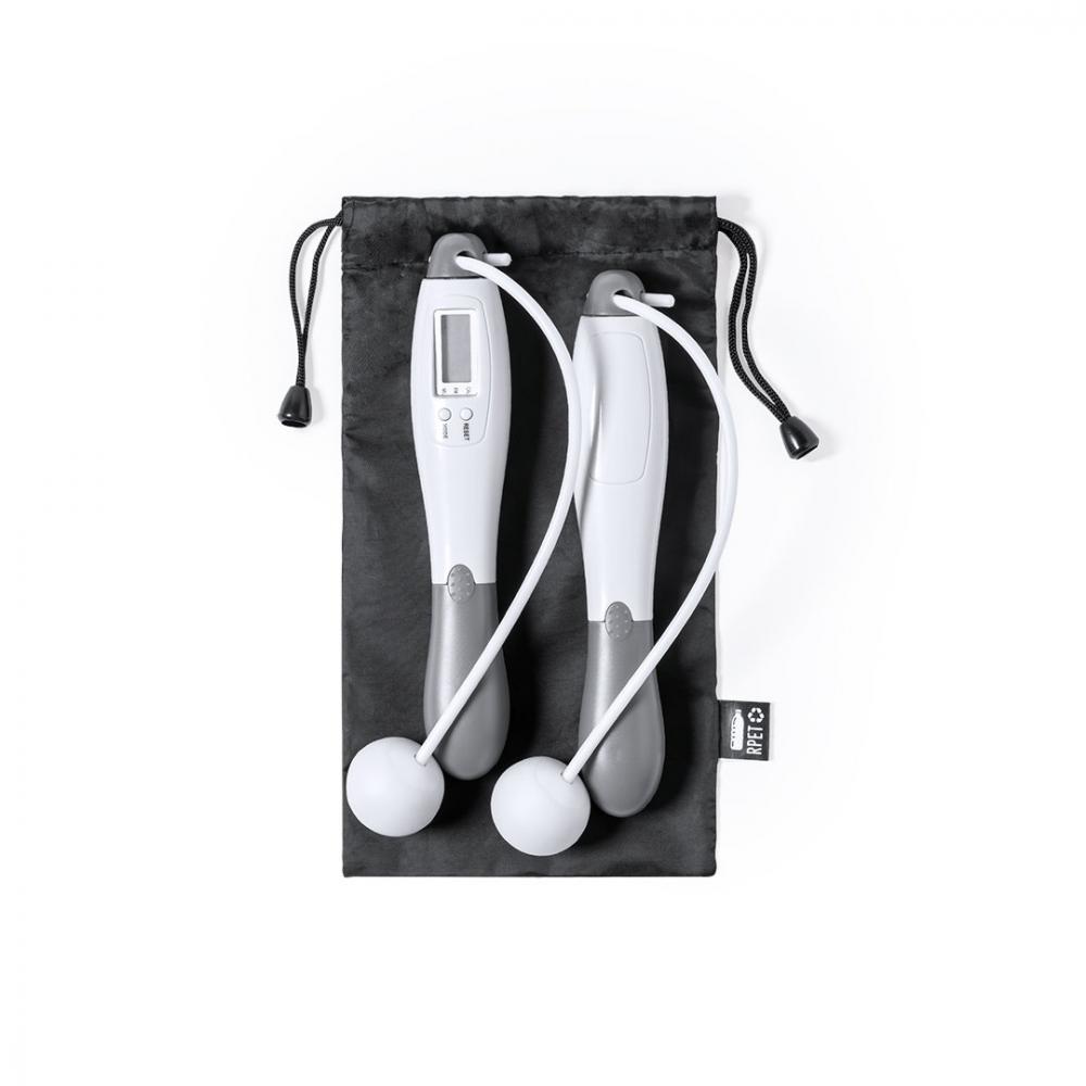 Особенности Цифровая скакалка для прыжков, изготовленная из прочного АБС-пластика. С эргономичными ручками и жидкокристаллическим дисплеем с кнопками регулировки. Представлен в полиэстеровом мешочке RPET с застежкой на шнурок, изготовленном из переработанного пластика, чтобы способствовать повторному использованию пластиковых отходов и способствовать устойчивому развитию планеты. Отличительная этикетка RPET на корпусе. Питание от батареи (батарейки для кнопочных элементов входят в комплект). Мешочек из полиэстера RPET. Батарейка для кнопок входит в комплект поставки