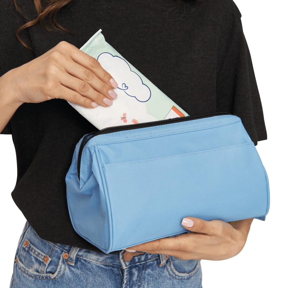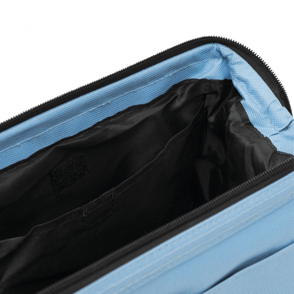 Туалетная сумка DAYBREAK: основное отделение застегивается на металлический держатель и молнию, внутреннее отделение на застежке-липучке и отделение на молнии, снаружи один карман на застежке-липучке