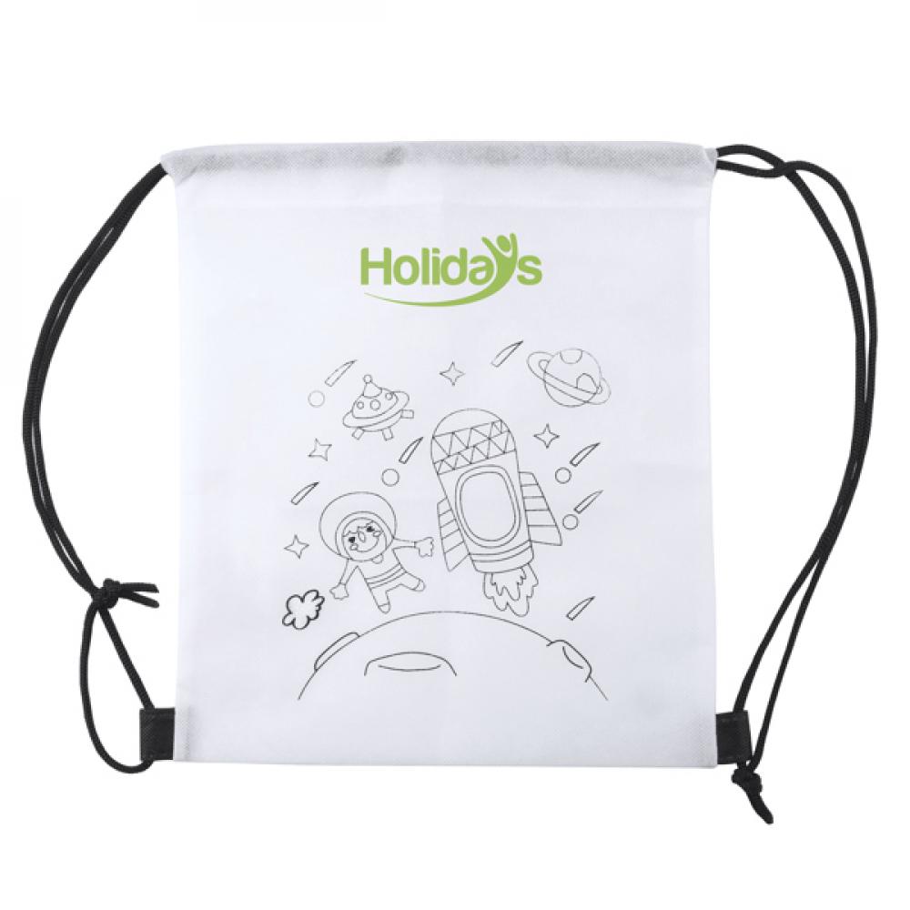 Нетканый рюкзак на затяжку с дизайном для раскрашивания. В комплекте 5 карандашей разных цветов.
