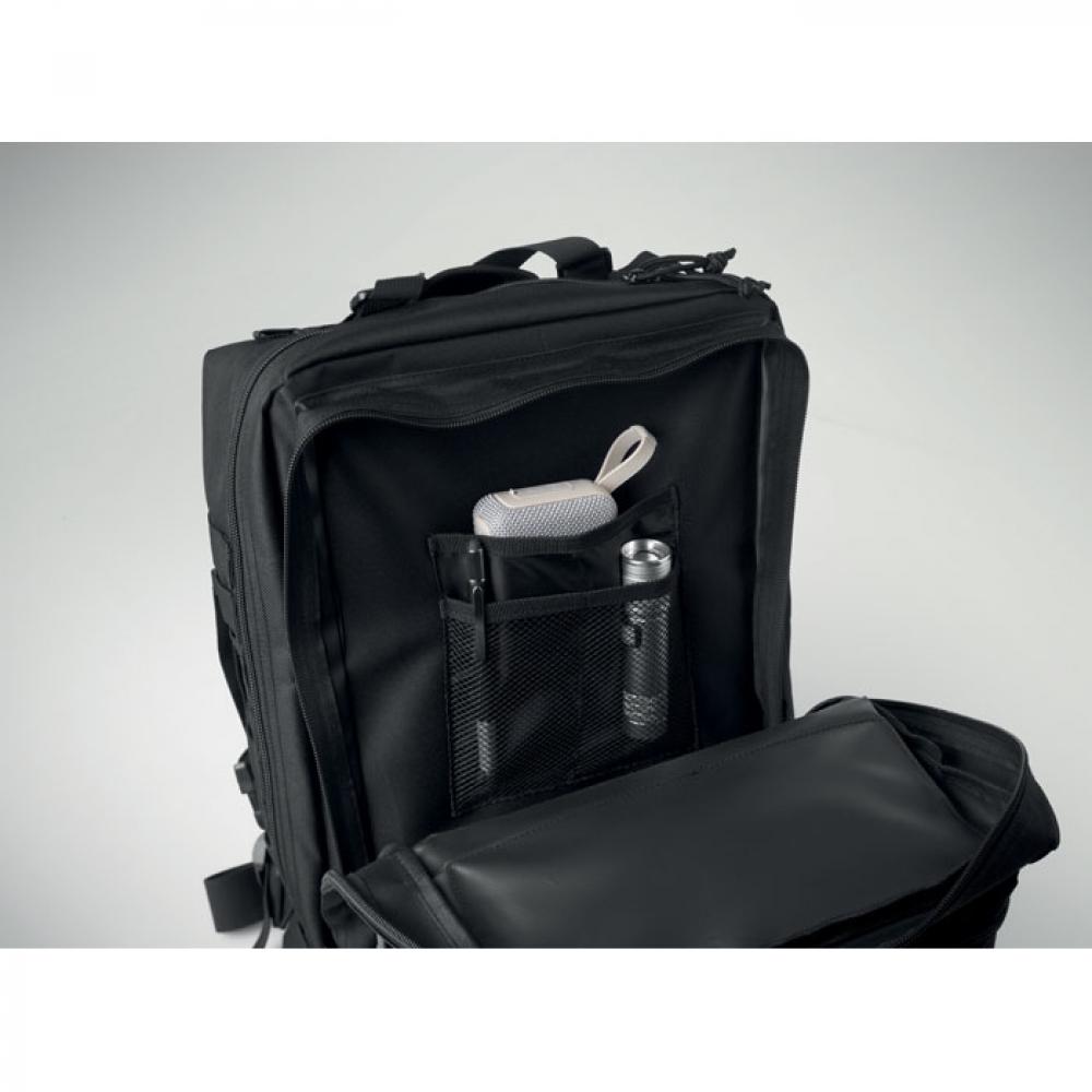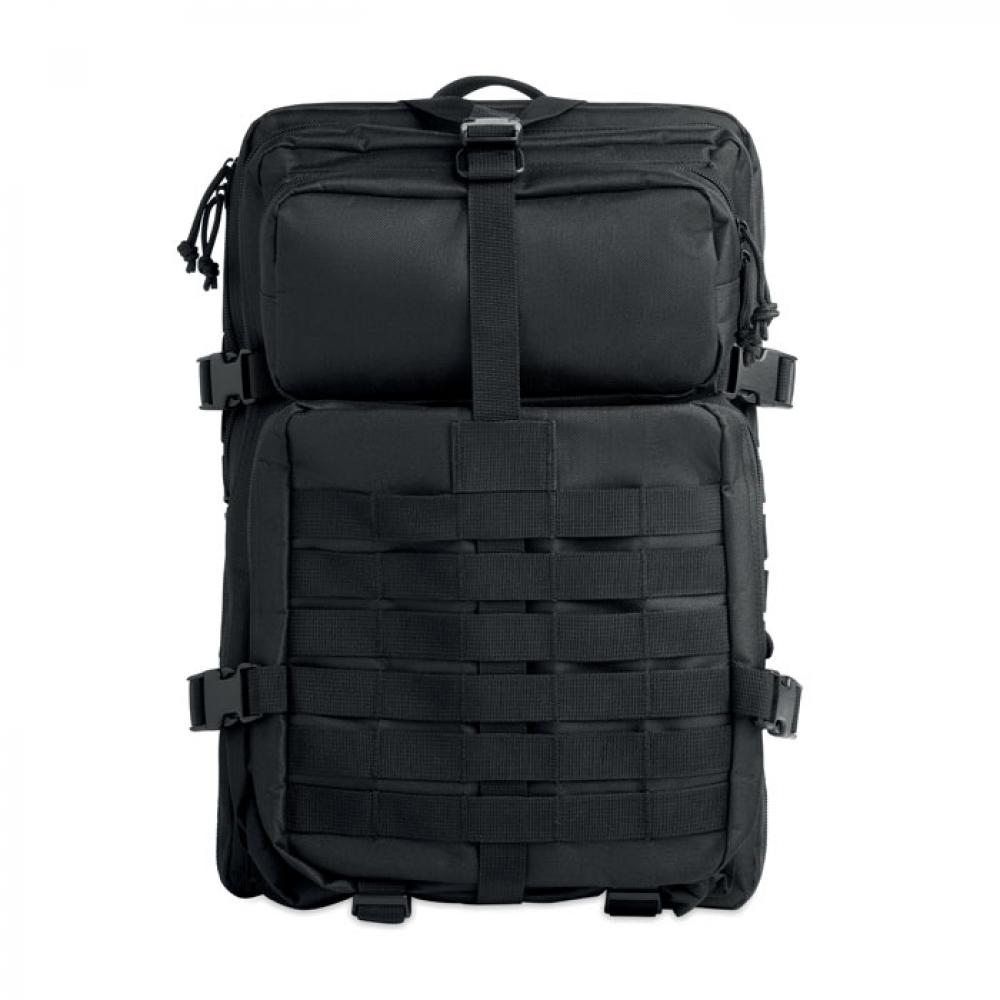 Рюкзак для активного отдыха объемом 50 литров из материала 600D RPET с мягким отделением для ноутбука и несколькими внутренними карманами, передними карманами на молнии, мягкими сетчатыми лямками и спинкой, поясным ремнем и эластичными креплениями для аксессуаров.