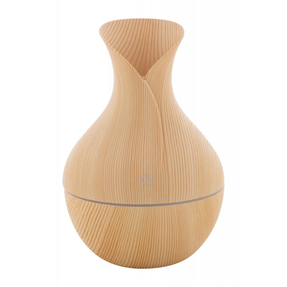 Пластиковый деревянный узорный настольный увлажнитель с многоцветной светодиодной подсветкой. В комплекте кабель для зарядки через USB. Объем резервуара: 130 мл.