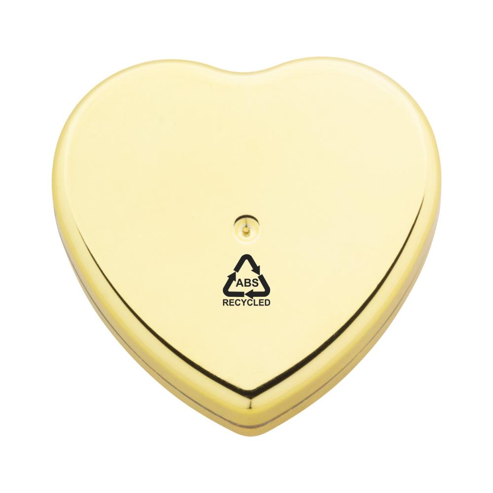 Ванильный бальзам для губ в форме сердца из переработанного ABS-пластика металлического цвета с защитой SPF15. Продукт не содержит ингредиентов животного происхождения.