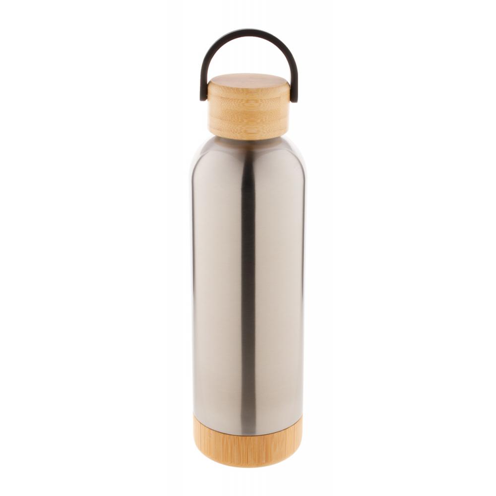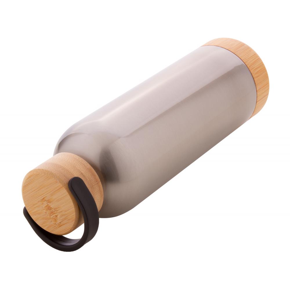Вакуумная колба из нержавеющей стали с двойными стенками, бамбуковой крышкой для переноски и основанием, 500 мл.