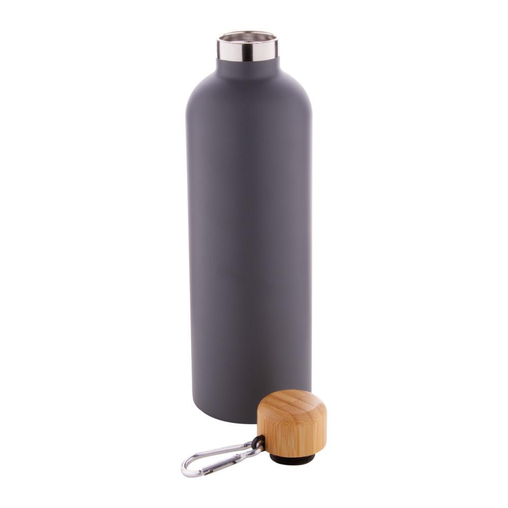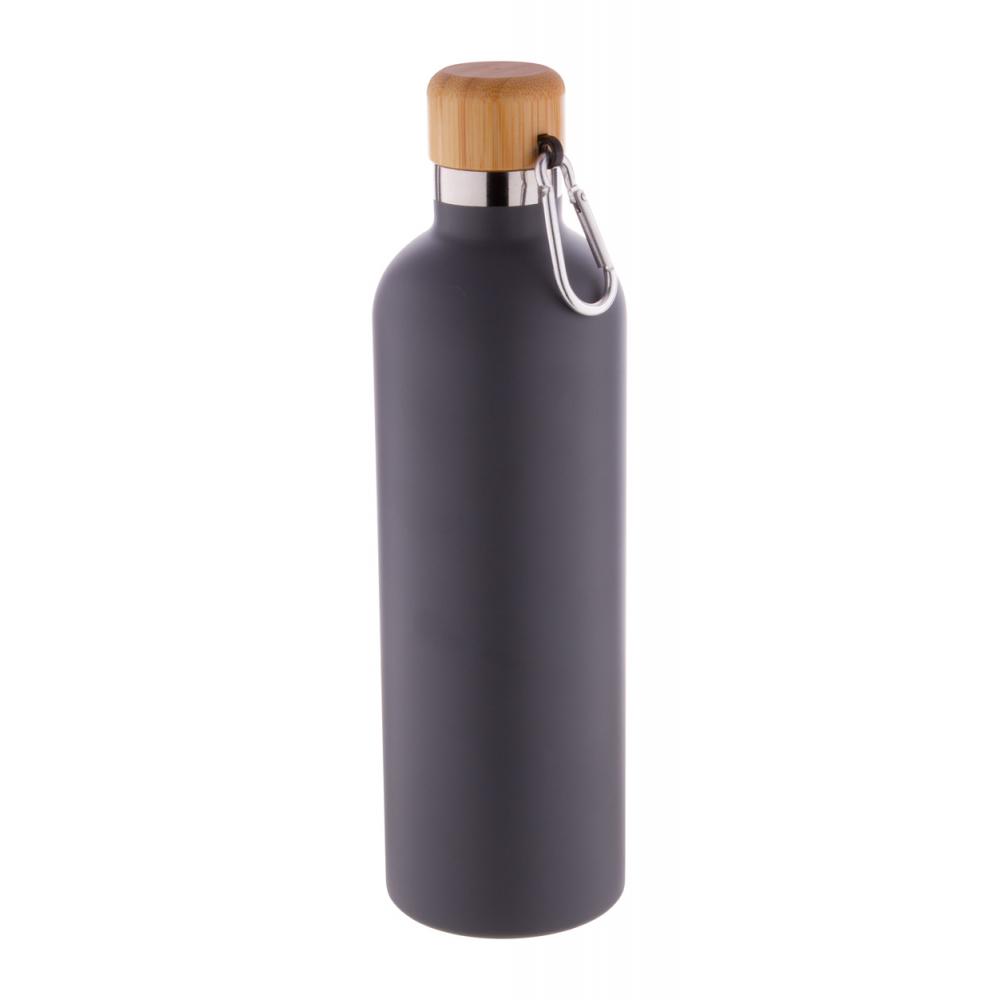 Вакуумная колба с двойной стенкой из нержавеющей стали с бамбуковой крышкой и карабином, 500 мл.