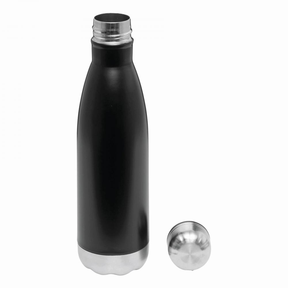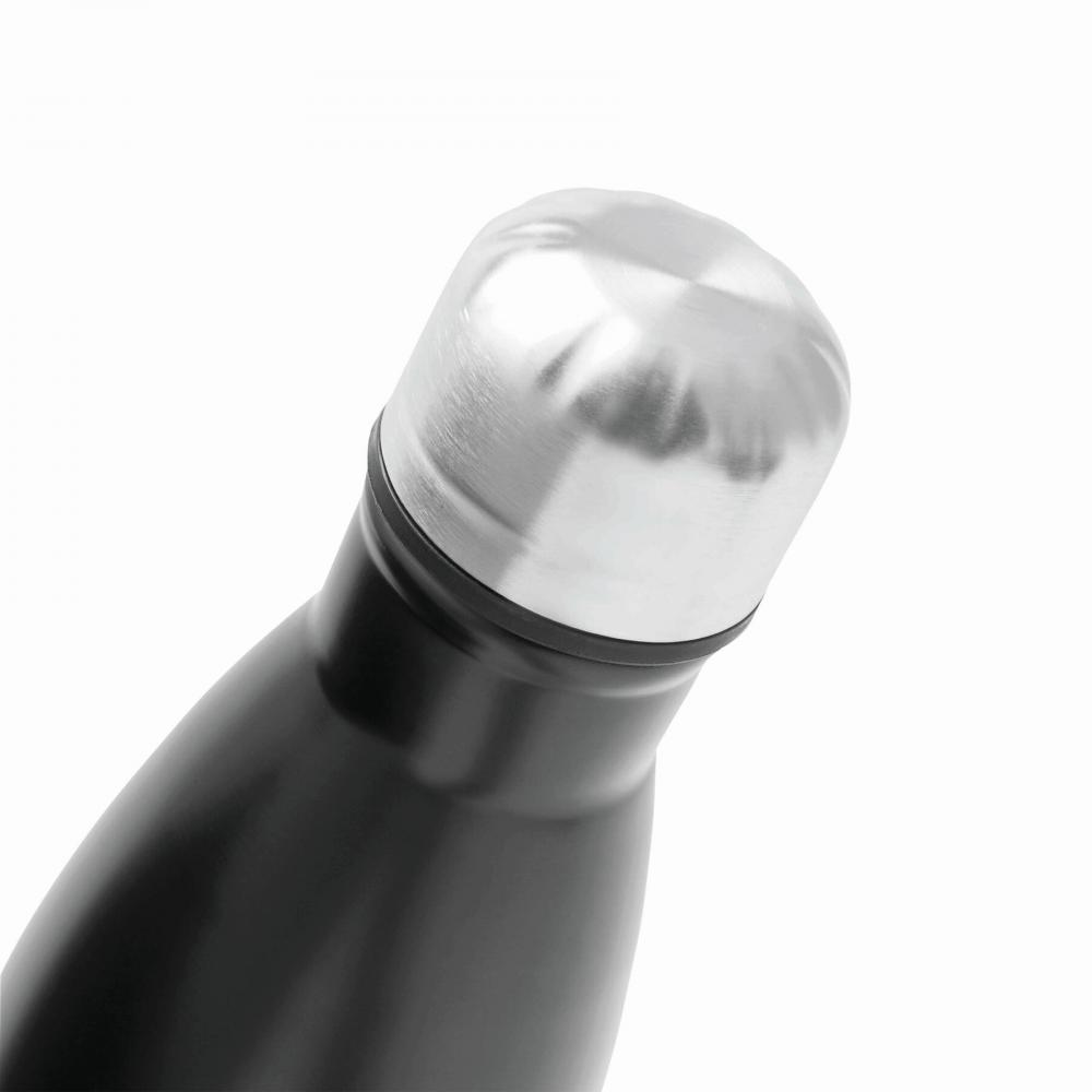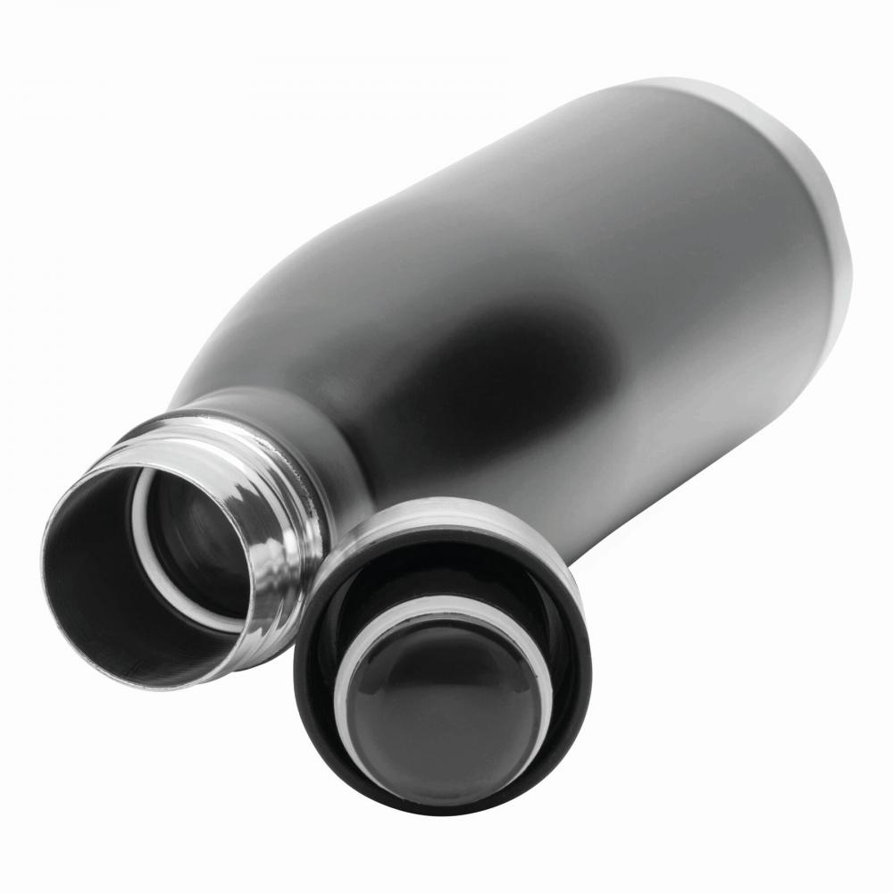 Двустенный вакуумный флакон GOLDEN TASTE: внутри и снаружи из нержавеющей стали, надежная серебряная навинчивающаяся крышка, вместимость: ок. 500 мл.