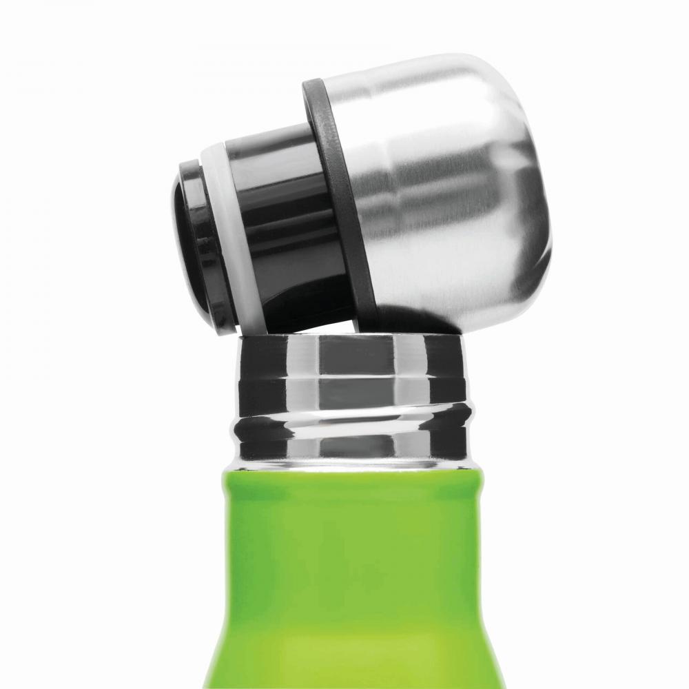 Двустенный вакуумный флакон GOLDEN TASTE: внутри и снаружи из нержавеющей стали, надежная серебряная навинчивающаяся крышка, вместимость: ок. 500 мл