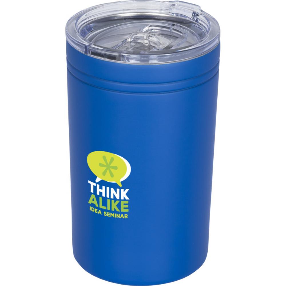 Двойные стенки, вакуумная изоляция. Прозрачная крышка с защелкой и сдвижным механизмом. Можно использовать как термокружку или изолятор для напитков. Объем 330 мл.
