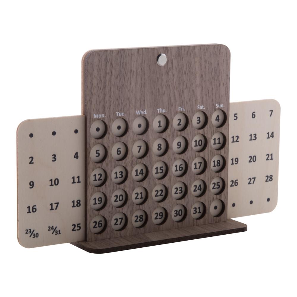 Вечный настольный календарь из фанеры из березы и ореха. Поставляется в разобранном виде.