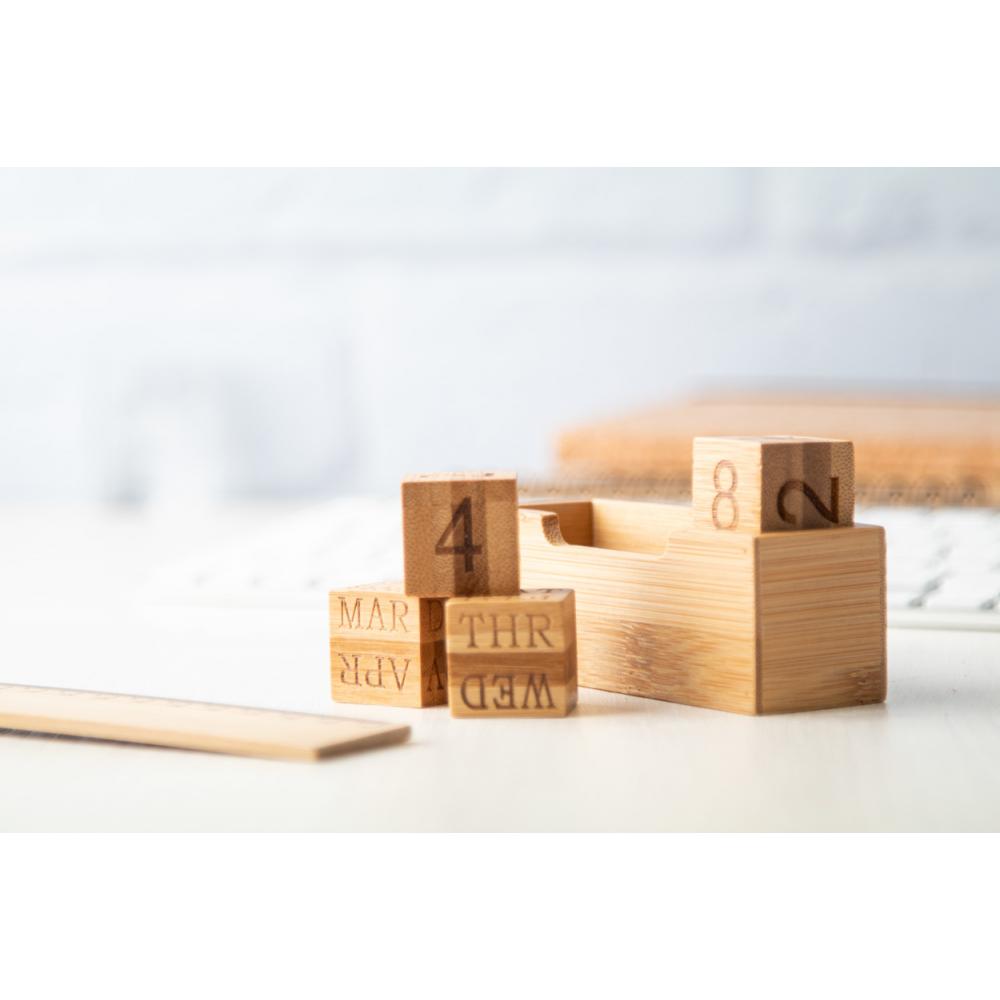 Бамбуковый вечный календарь в настольном держателе с 4 кубиками.