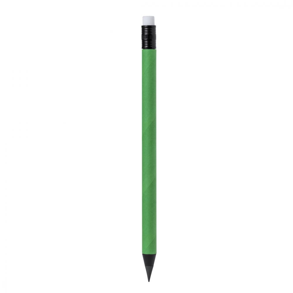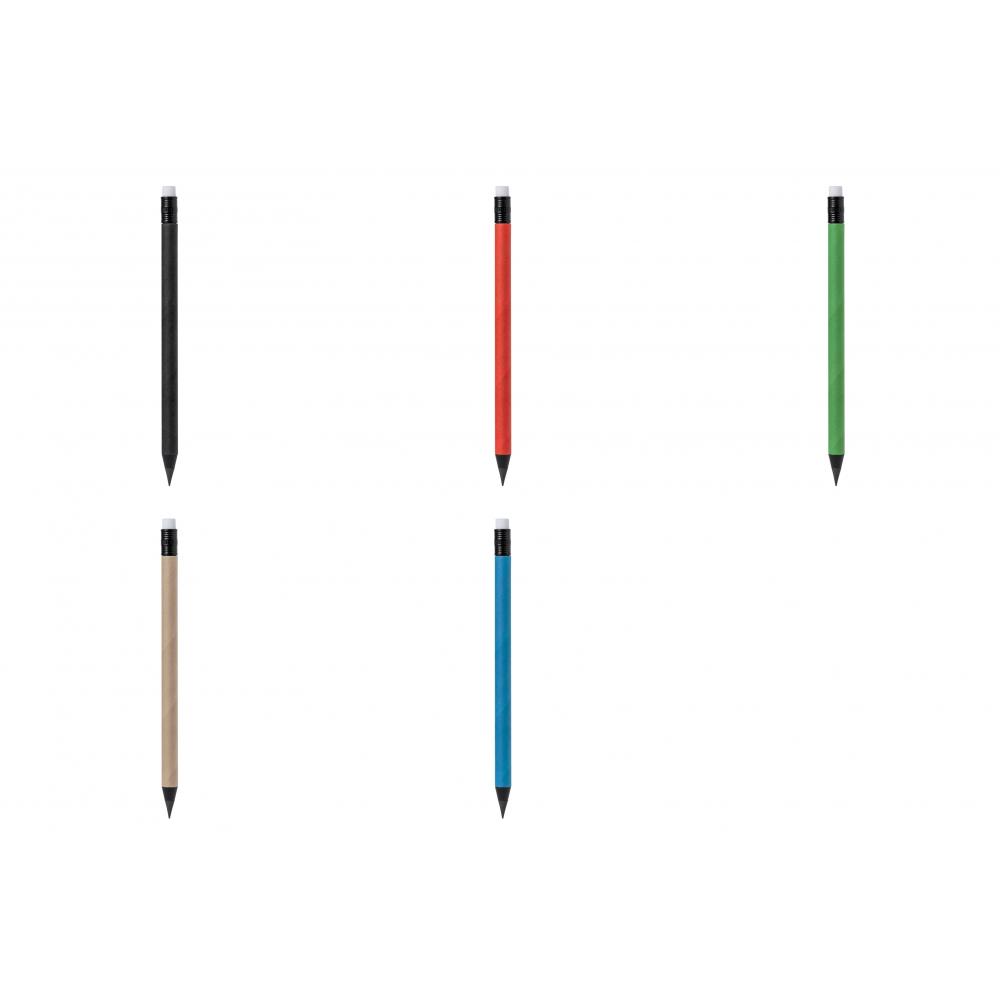 Характеристики Вечный карандаш из переработанного картона. Многоразовый и с бесконечной возможностью писать, чтобы всегда использовать один и тот же карандаш и не создавать отходов. Включает ластик на верхушке карандаша, с логотипом из переработанного картона на одном из концов корпуса. Доступен в широкой цветовой гамме. Переработанный картон происходит из повторного использования производственных излишков и переработки бумаги в конце ее срока службы, что делает его экологичным и устойчивым материалом. Переработанный картон