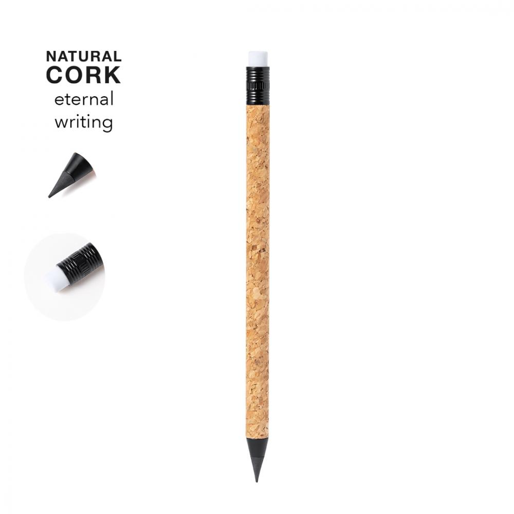 Характеристики Вечный карандаш из пробки. Многоразовый и с бесконечной возможностью писать, чтобы всегда использовать один и тот же карандаш и не создавать отходов. Включая ластик на верхушке карандаша. Изготовлен с использованием растительных элементов для поощрения использования натуральных сырьевых материалов и снижения загрязняющих выбросов. Пробка